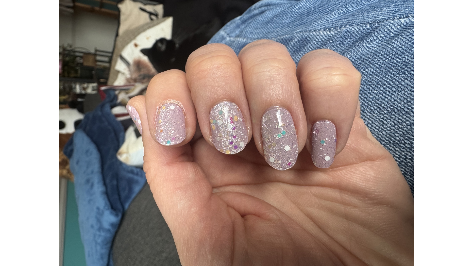Finish: semi sheer, holographic glitter, glitter flakies