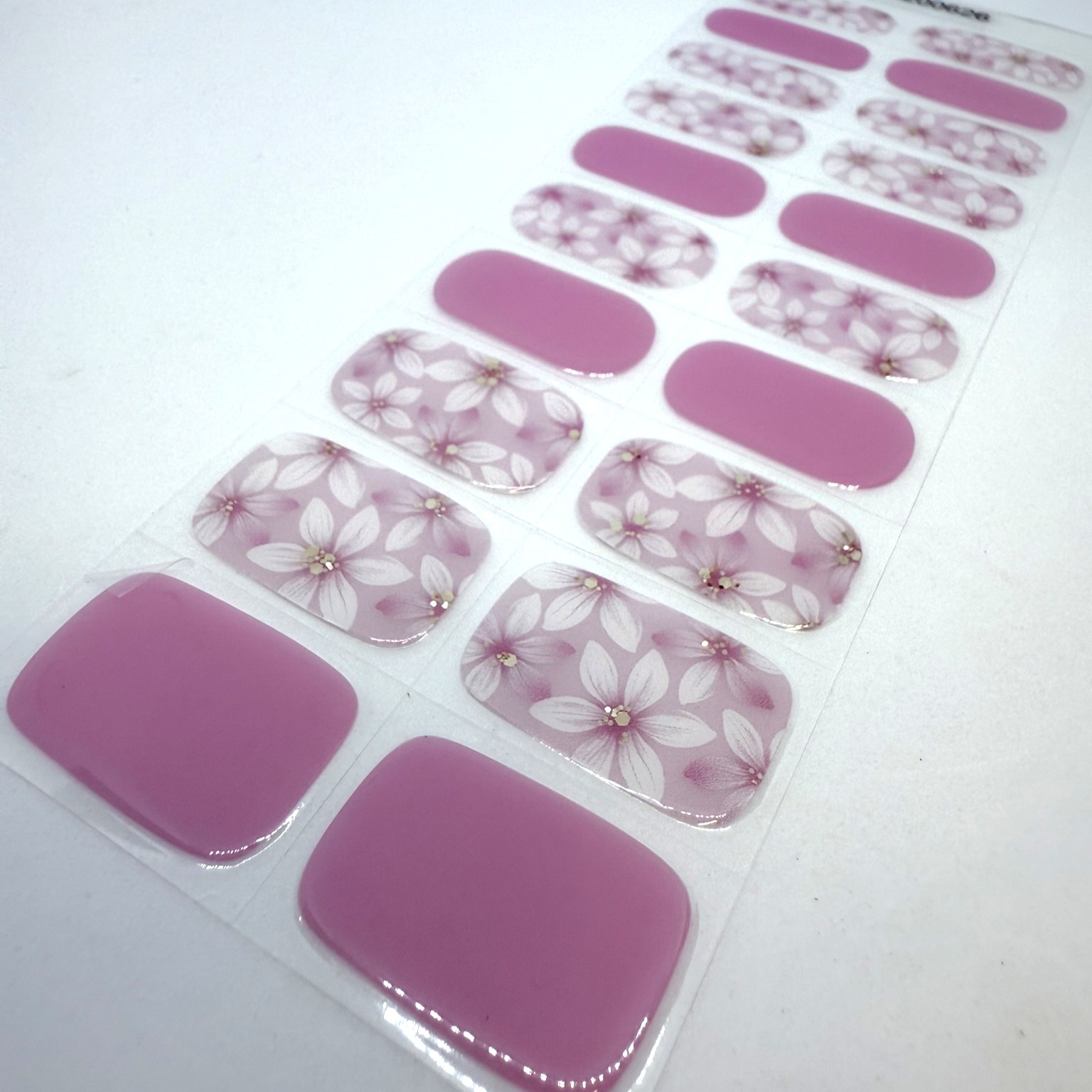 Peel & press: Remove the clear film, place the strip on your nail, and smooth it down.