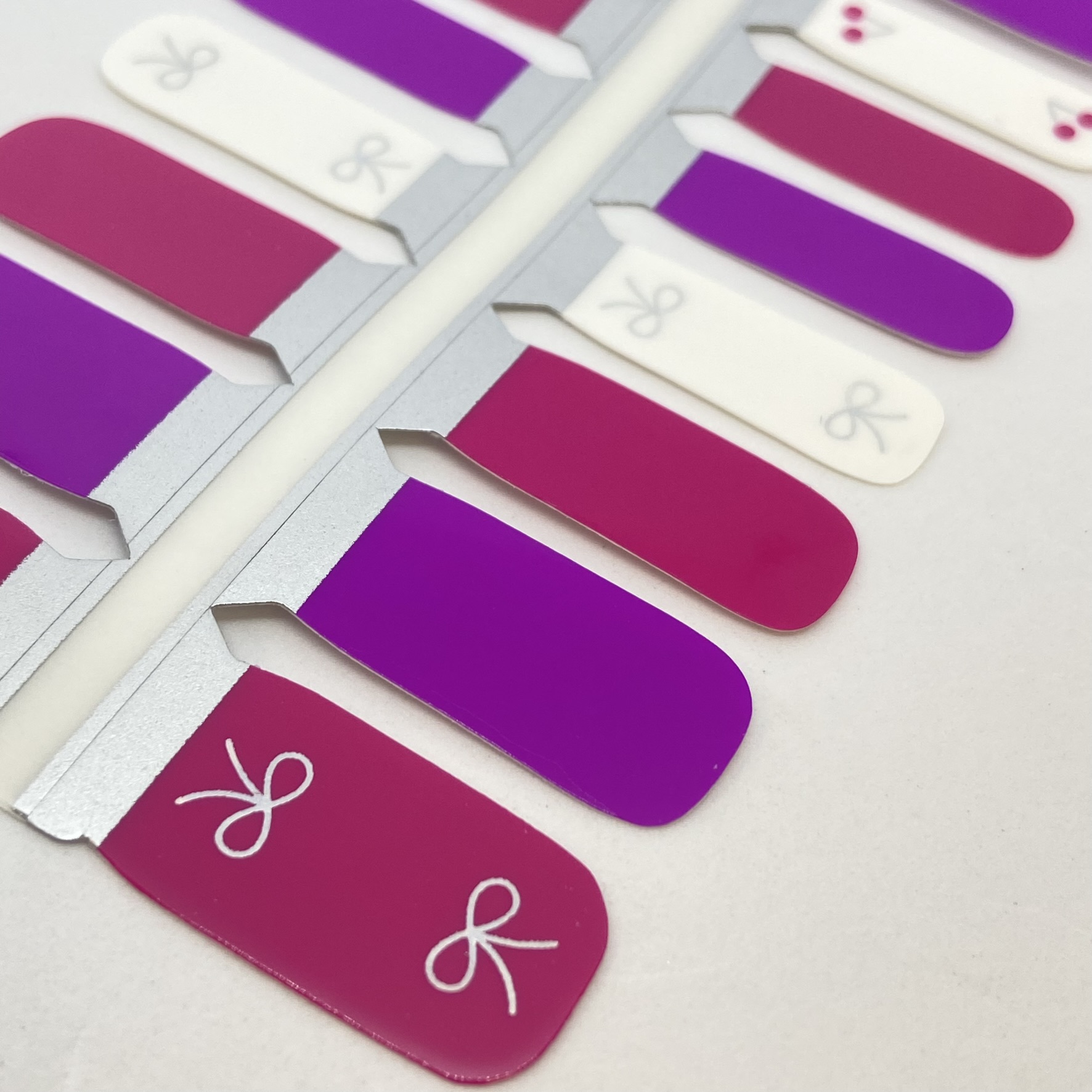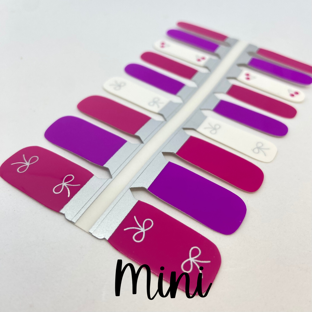 ✨ Say hello to Bowtiful Minis — a delightful mix of shiny silver foil bows on vibrant cerise and crisp white, with soft purple wraps. Perfectly sized for tiny nails, this sweet and stylish design brings a playful pop of color and sparkle that’s simply bow-tiful!
