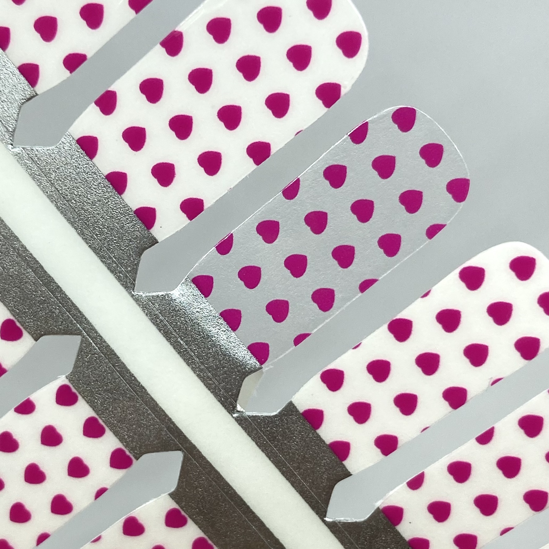 This adorable set of mini wraps features a sprinkle of teeny-tiny dark pink hearts on a clear base, perfect for little nails or anyone who loves a dainty, playful look. Sweet, simple, and oh-so-cute, they’re like a hug for your fingertips!