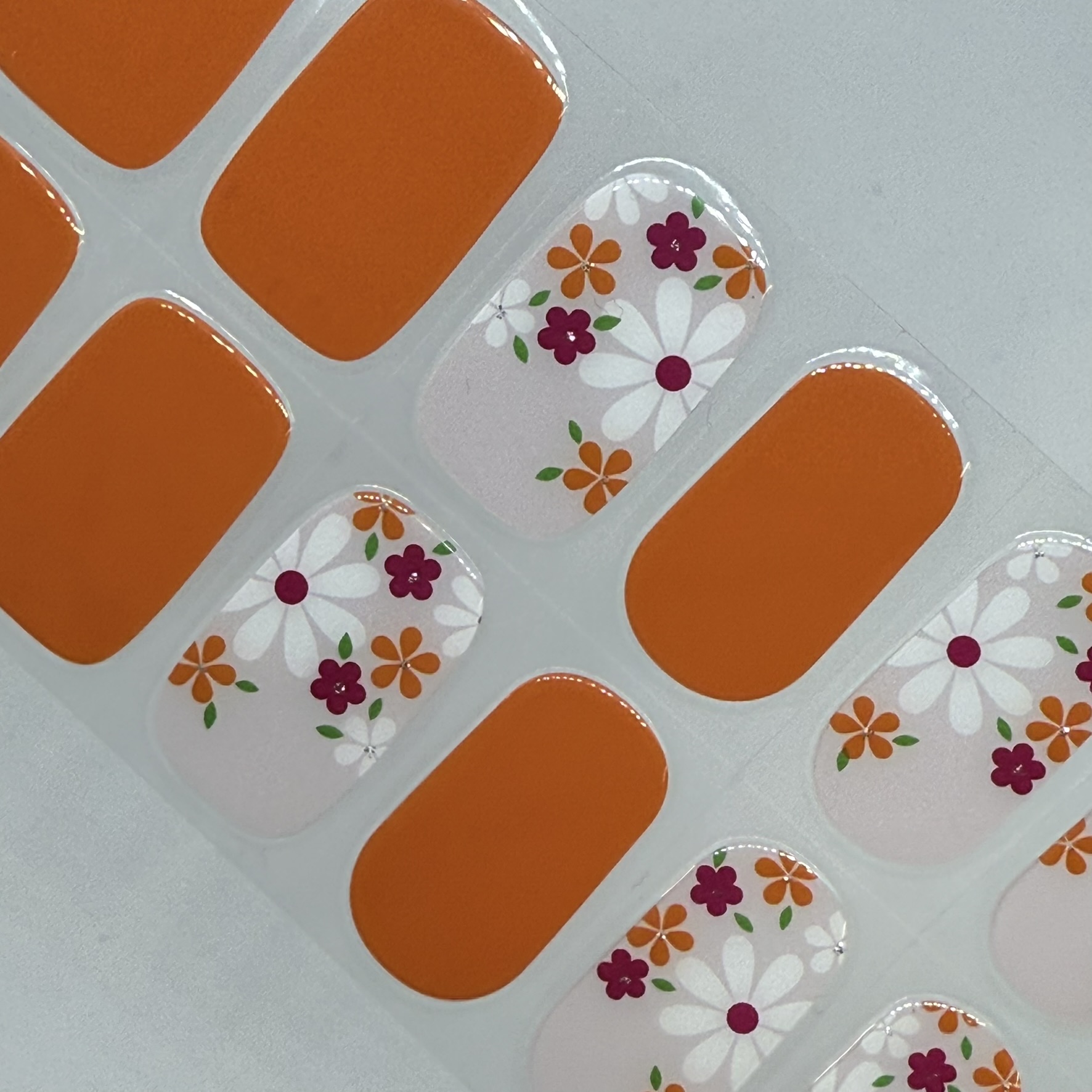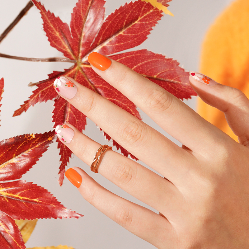 A little retro, a little romantic, Falling for Florals is all about autumn charm. With burnt orange accents and dainty daisies dancing across a soft pink base, this set brings cosy vibes and vintage flair to your fingertips. Perfect for pumpkin spice season, coffee dates, and anyone who loves a touch of flower power with their fall fashion.