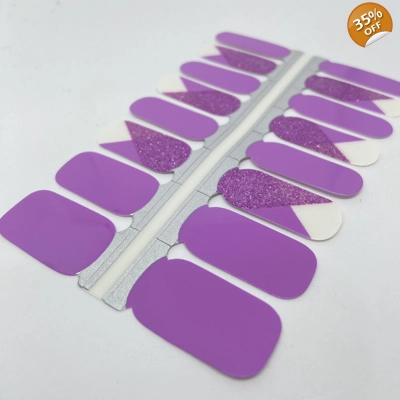 Purple pink solids with negative space accents in the form of an alternative french tip with deep pink glitter