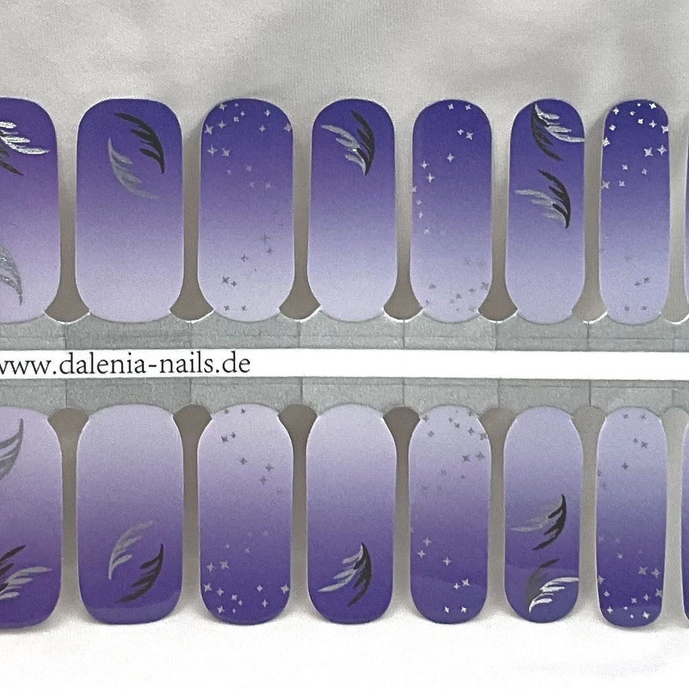Felicia Purple drifts from soft lavender to deep violet, sprinkled with silver stars and feather details for a magical, night-sky-inspired look. Available in other stunning colourways.