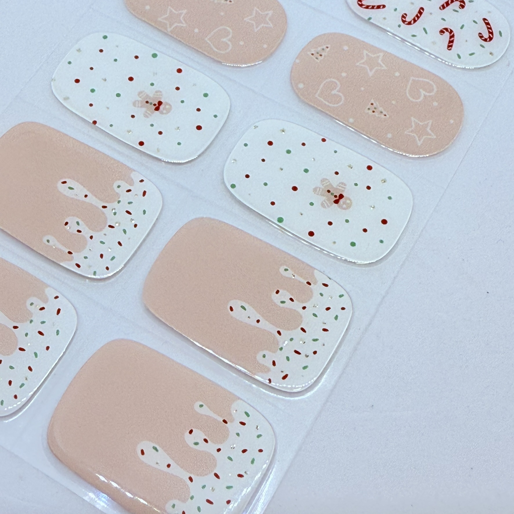 Soft nude and snowy white with sweet candy cane patterns, gingerbread men and colourful sprinkles. Frosted and fun this set brings all the cosy cookie vibes.