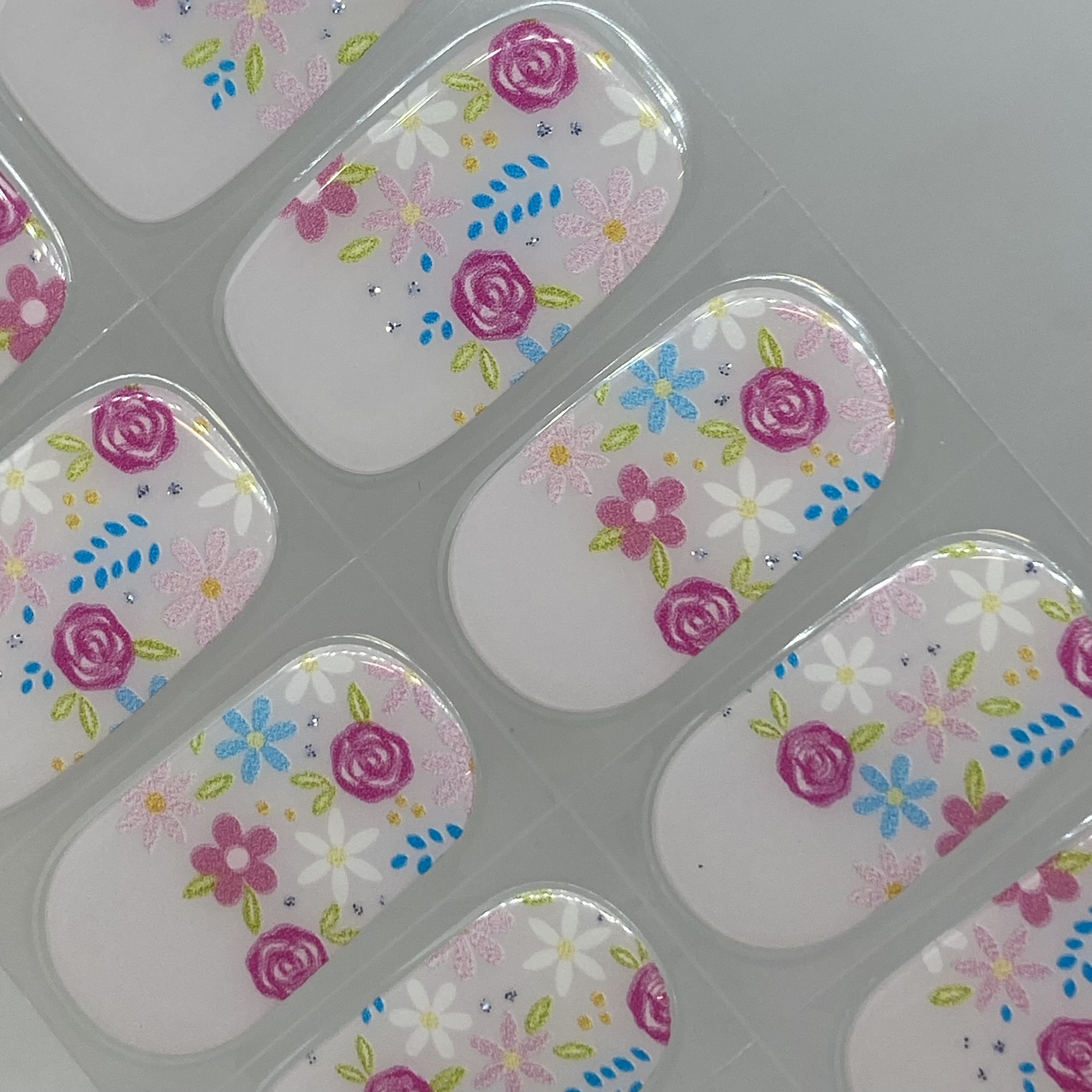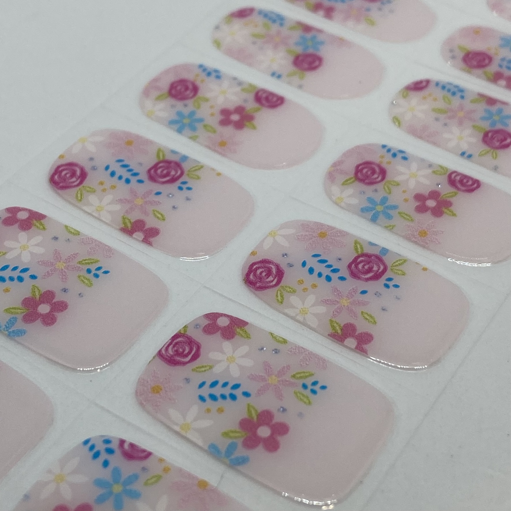 Floral French is a blooming twist on the classic French tip! Featuring dainty pink, white, and blue flowers clustered at the tips with playful pops of glitter, this design is fresh, flirty, and full of charm. The pale pink milky sheer base gives it a soft, barely-there glow—perfect for spring vibes, picnics, or whenever you're feeling pretty and playful.