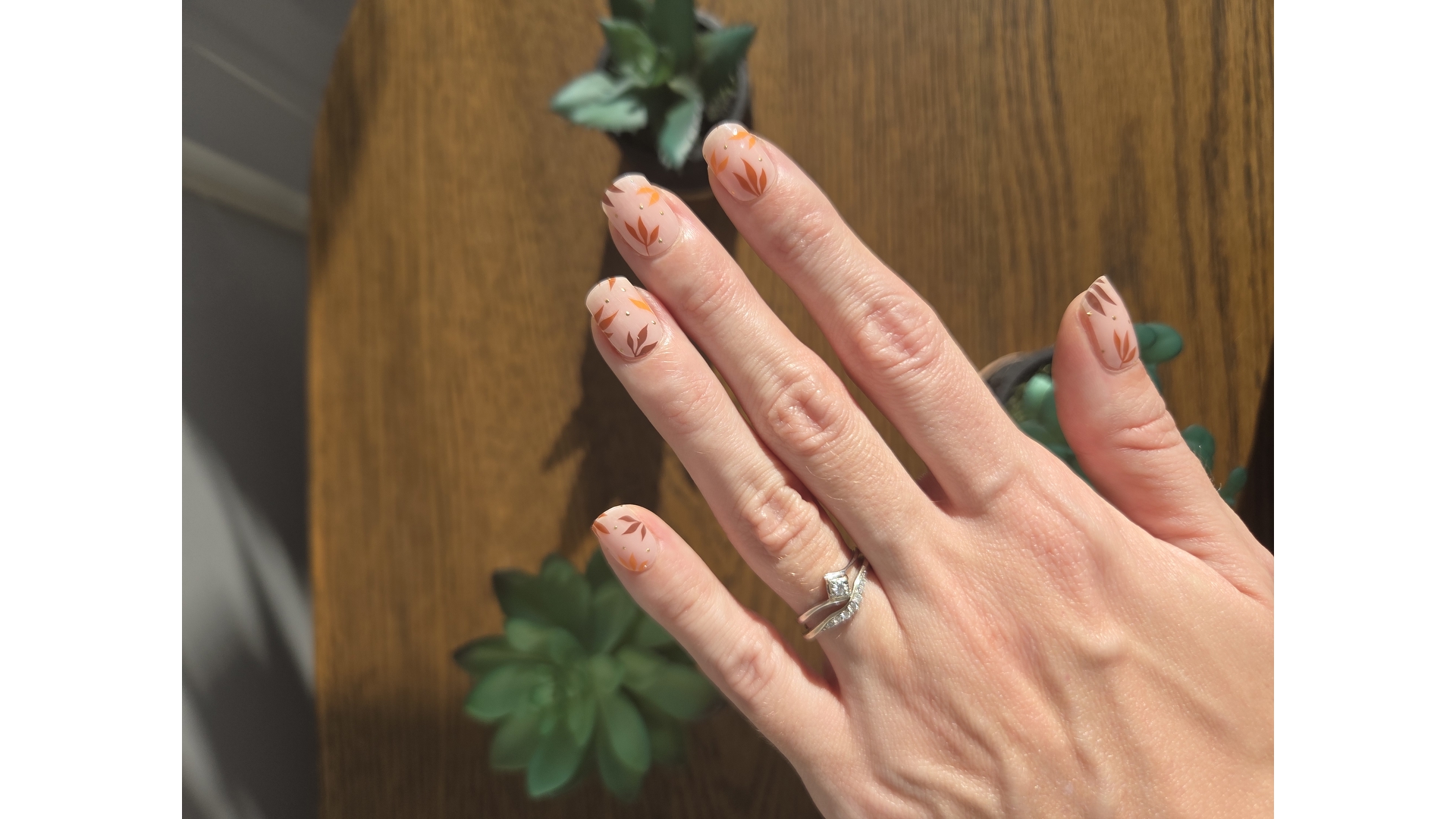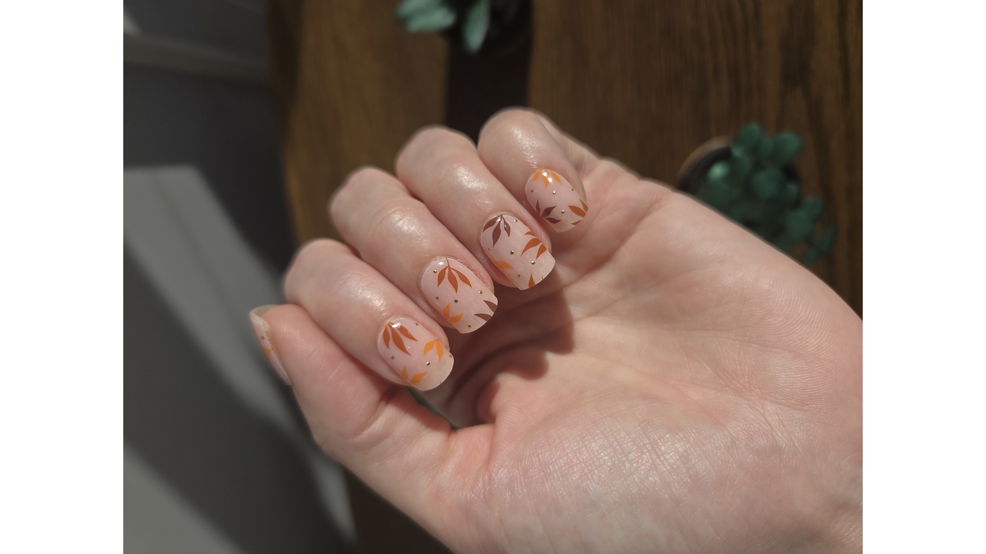 Peel & press: Remove the clear film, place the strip on your nail, and smooth it down.