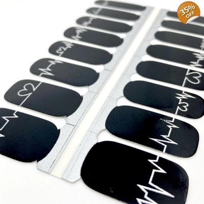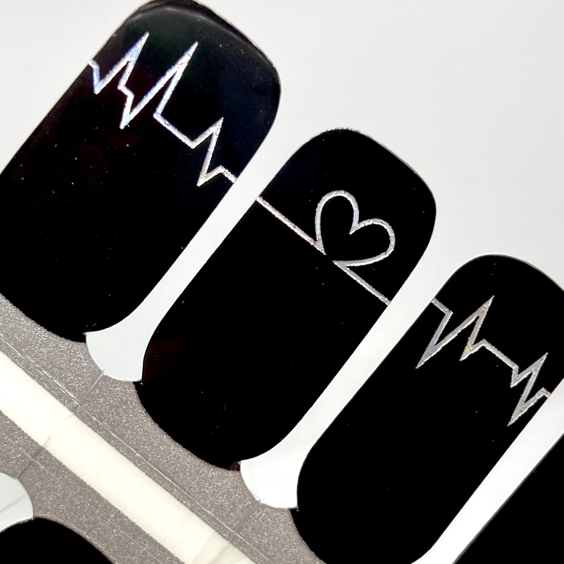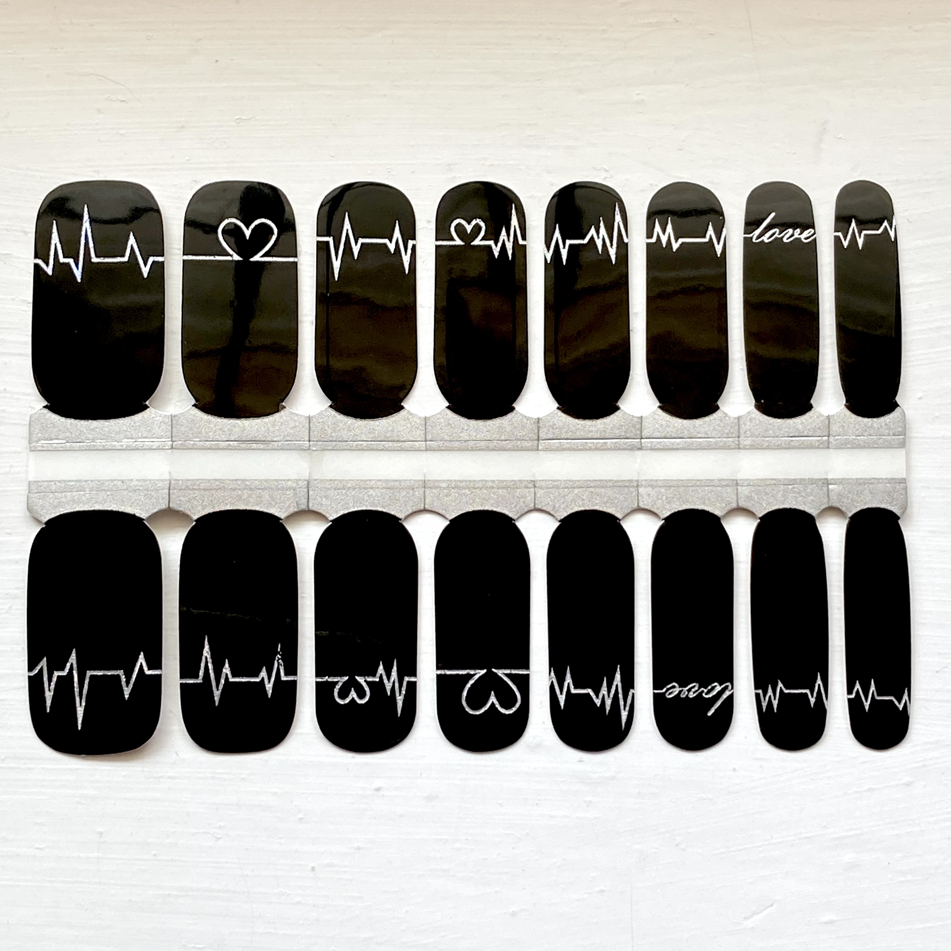 Black glossy wrap with a metallic holographic heartbeat line with hearts and the word love.