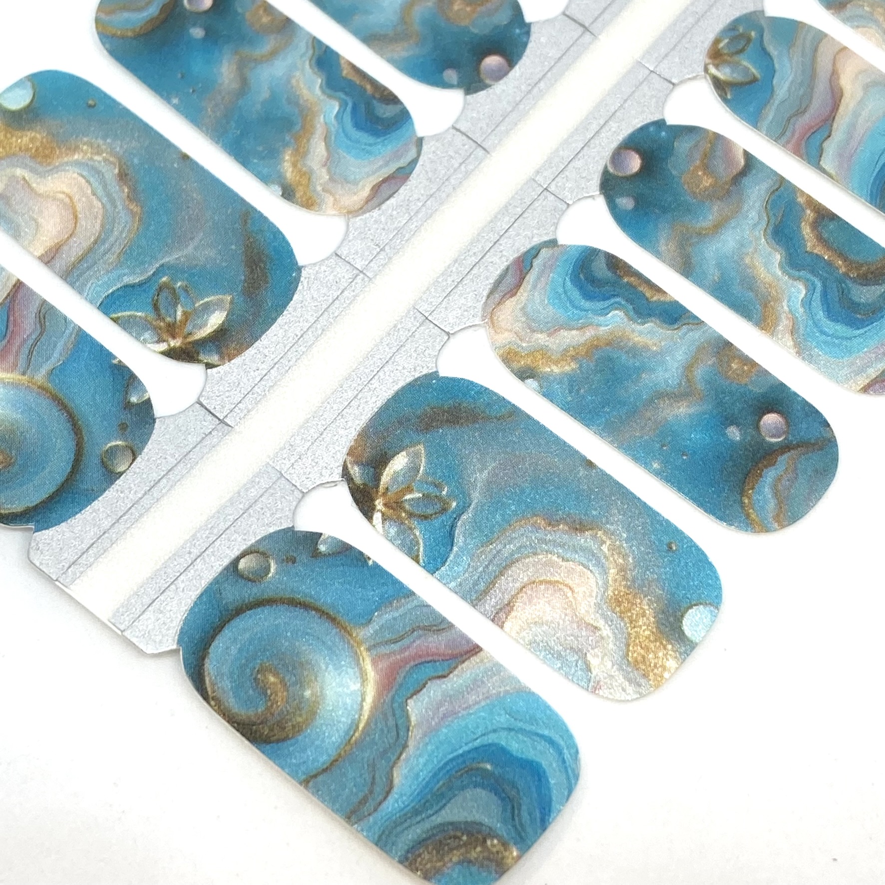 Hidden Paradise is an unusual teal and golden marble design with added embellishment.