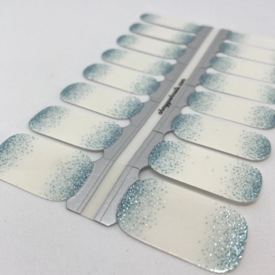 Icy blue ombre cuticle glitter on a transparent background. Wear alone or layered over another colour. Matches our solid glitter wrap, Elsa's Dream
