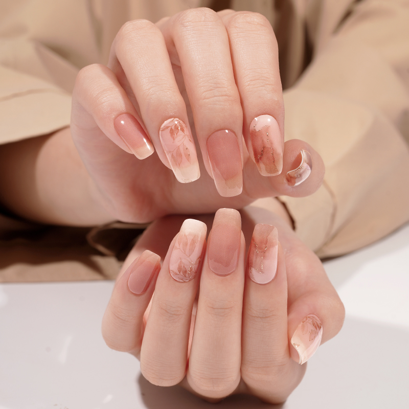 A dreamy balance of sheer marble swirls and delicate leaf patterns, this design lets your natural nails shine through while adding a touch of soft elegance. With its whisper-light finish and subtle shimmer, Leaflight is perfect for those who love understated beauty with a hint of magic.