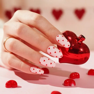 Pretty design with tiny red hearts on a pink background, perfect for love day!