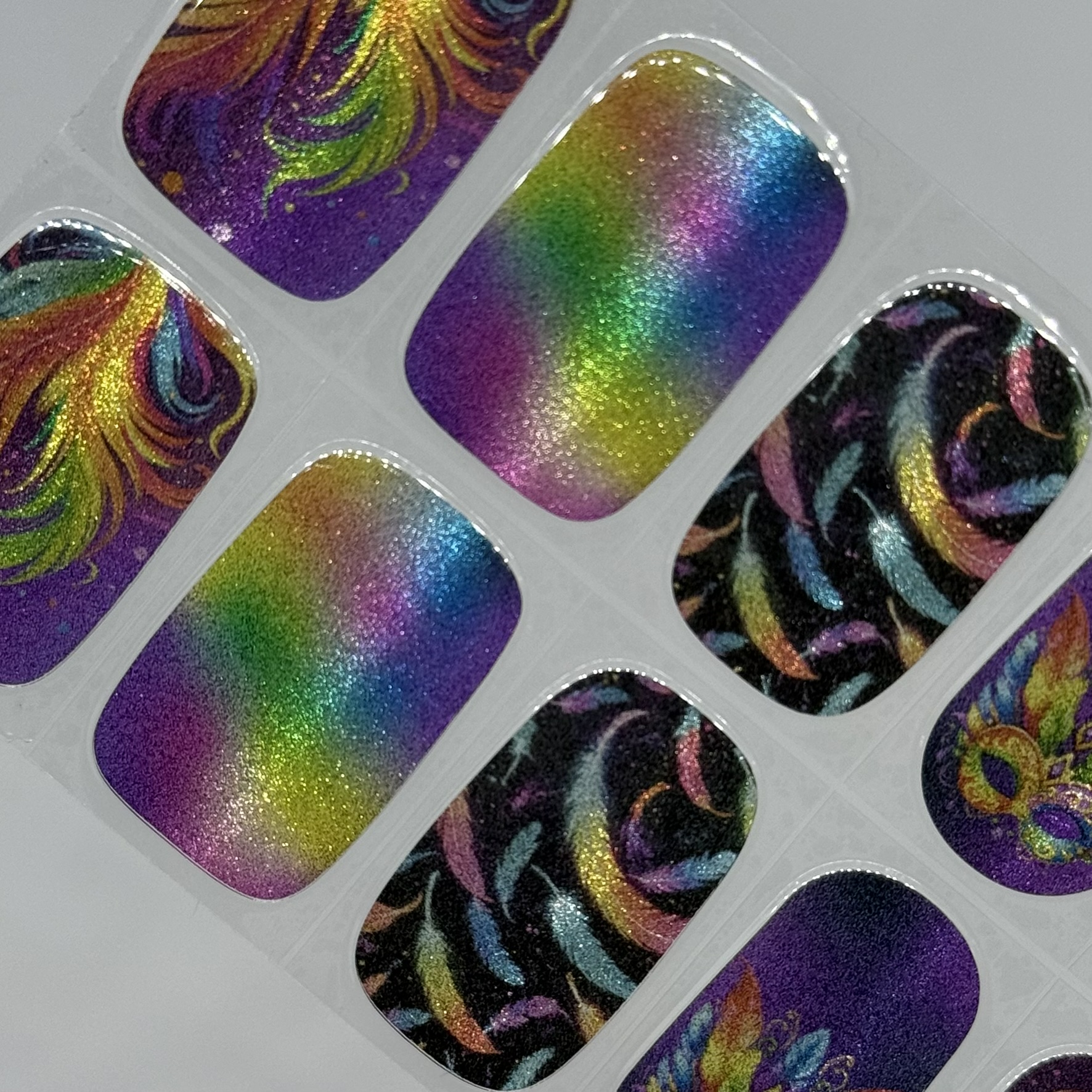 Masquerade Magic features a deep violet base layered with rainbow magnetic cat’s eye shimmer that shifts and glows as the light hits. Intricate feather swirls and masquerade details add that carnival after dark energy, while the multi dimensional finish gives serious depth and movement.
