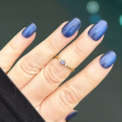 Rich, deep and oh so luxurious, Midnight Velvet is the ultimate after dark statement. This inky navy shade shimmers with a cat’s eye sparkle that catches the light like crushed velvet. It’s smooth, sultry and just the right amount of dramatic, perfect for those nights when you want your nails to whisper “classy” but still steal the show.