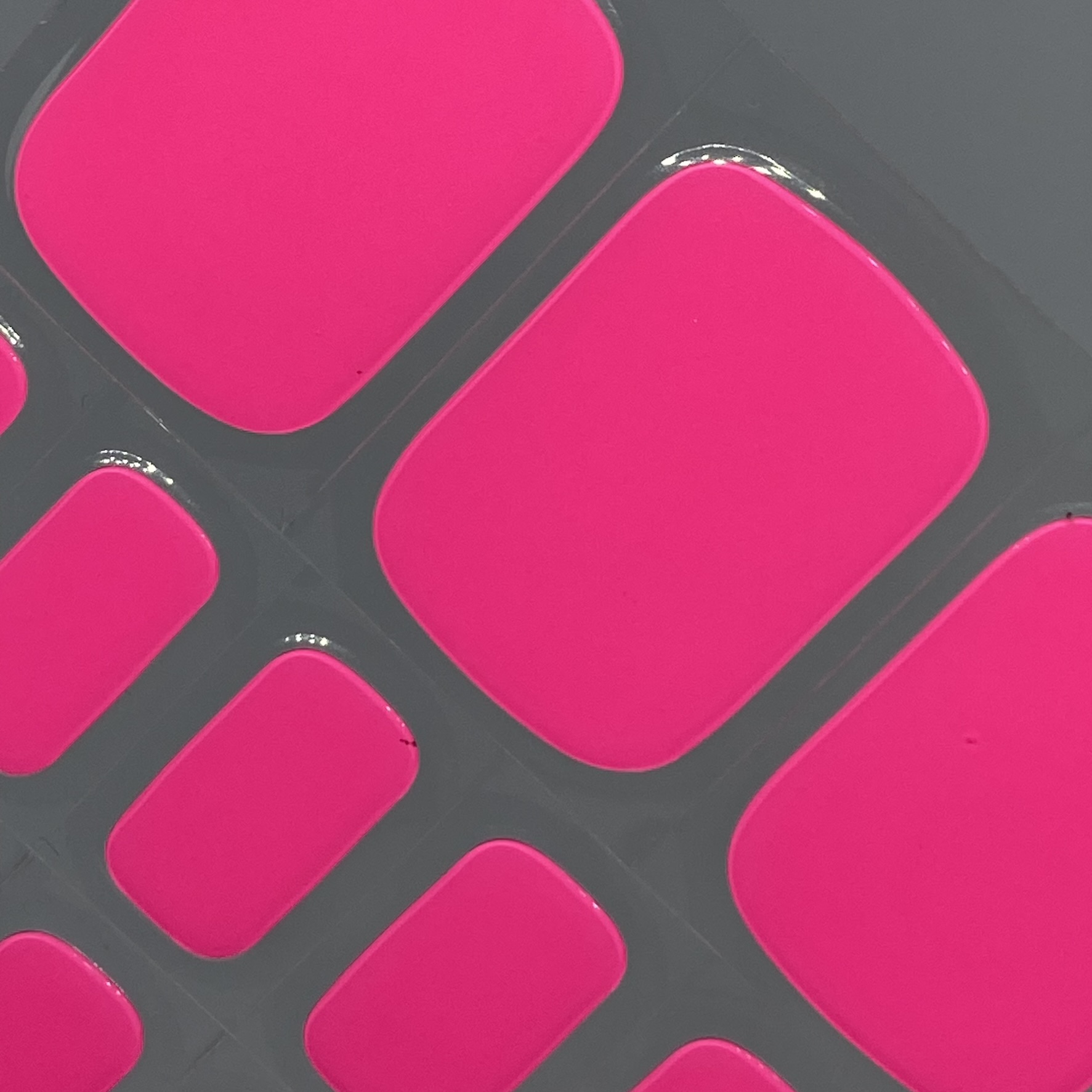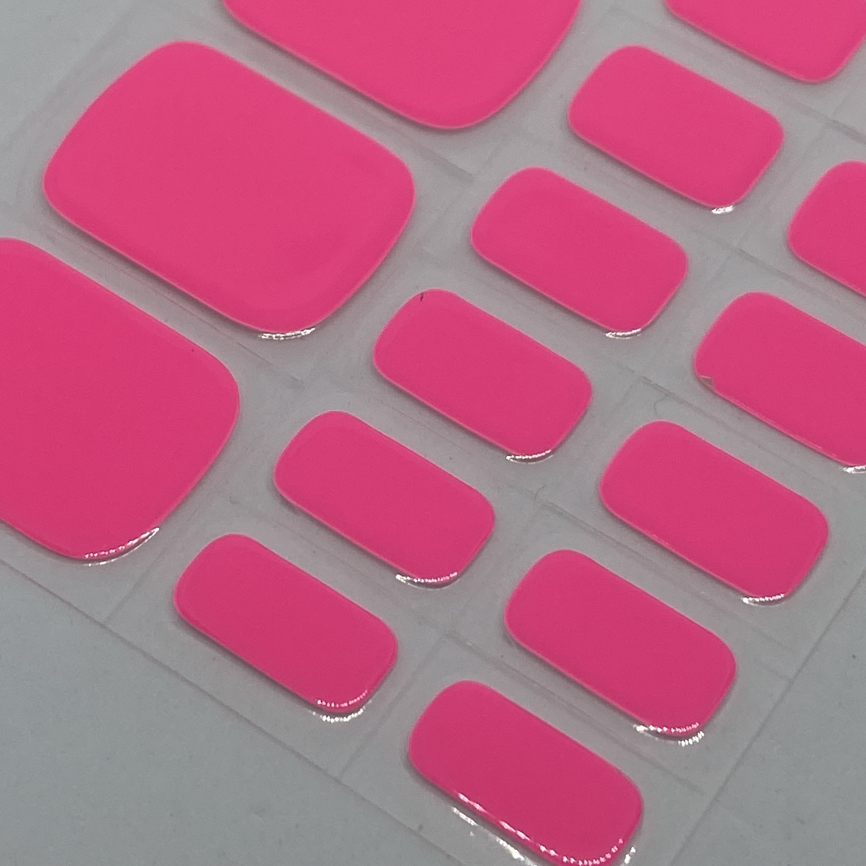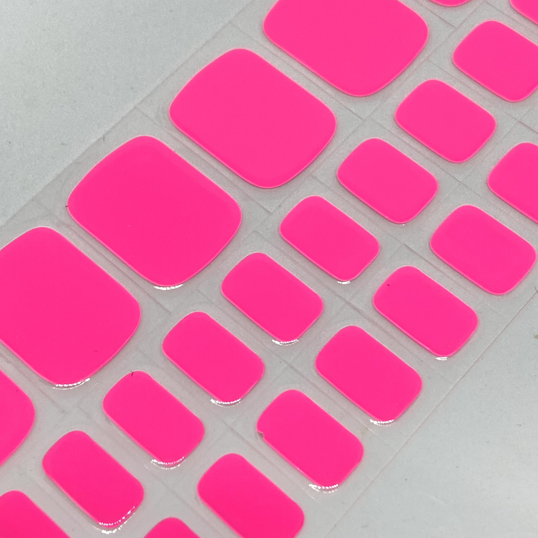Hot neon pink solid colour semi cured gel wraps designed just for toes.