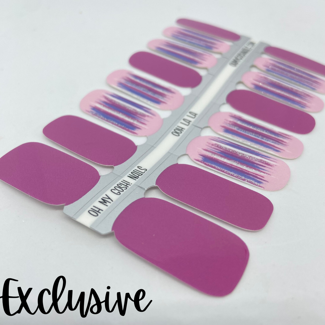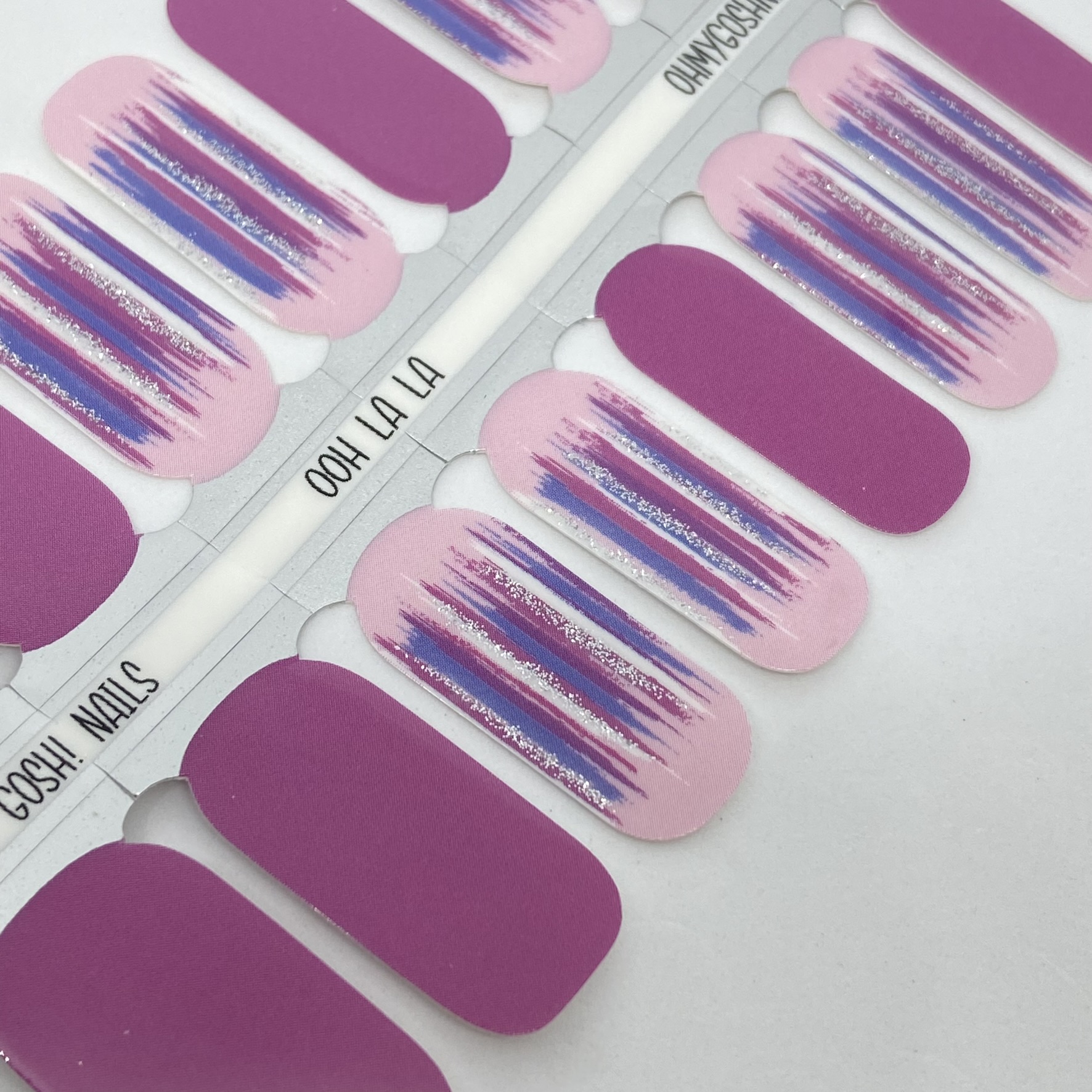 Turn heads and drop jaws with Ooh La La! This flirty mix features bold fuchsia nails paired with pink-toned accent wraps streaked with more bold fuchsia, periwinkle blue, and pops of holographic silver—like a Parisian runway show at your fingertips. Fun, fierce, and unapologetically fabulous, this set is made for those moments when you want your nails to say, “Yeah, I’m the main character.”