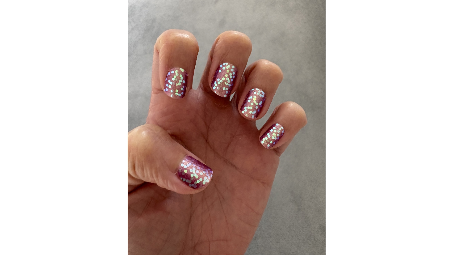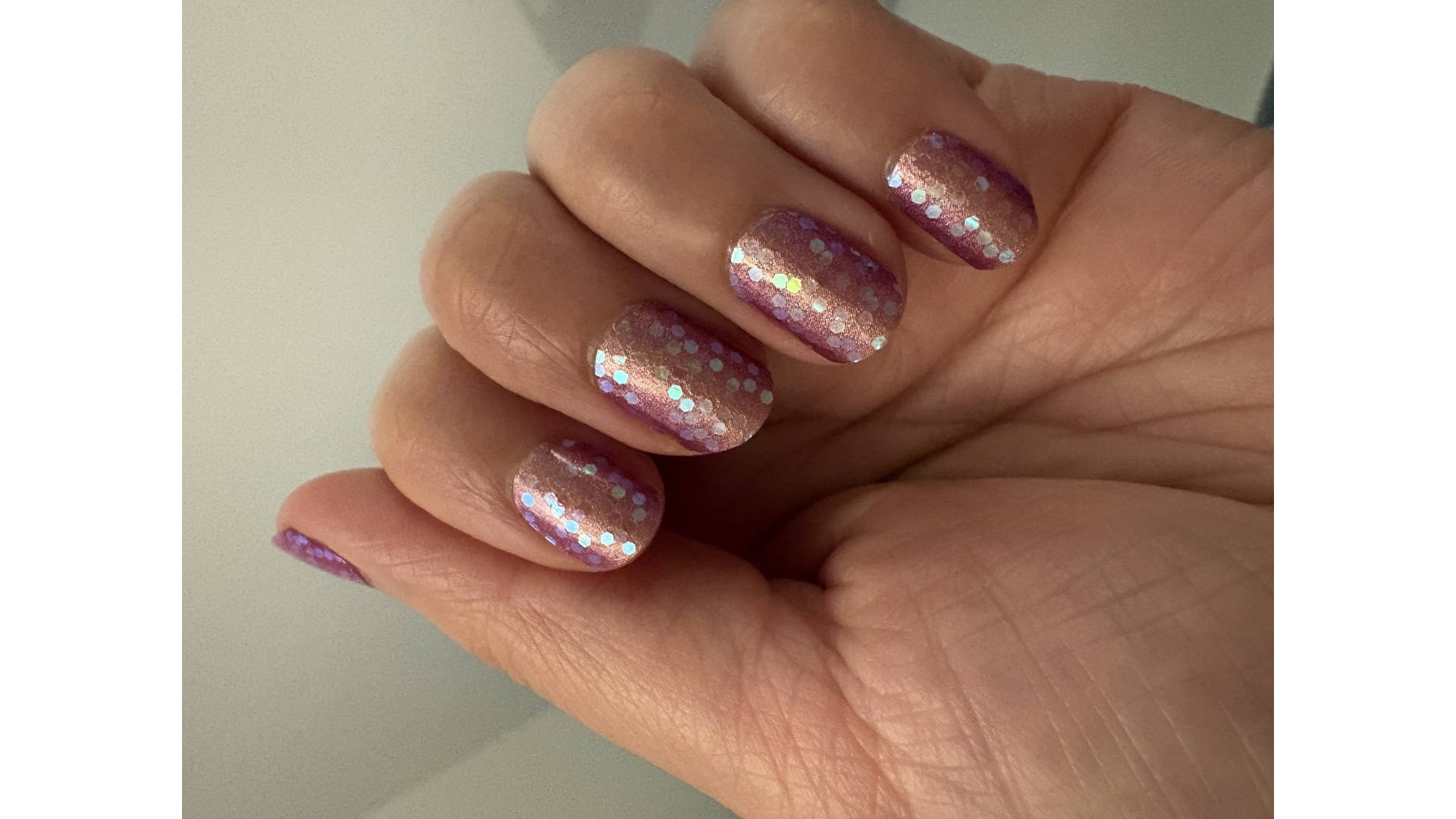 Beautiful pinky purple ombré and lovely shiny chunky glitter! So easy to apply and they look stunning.