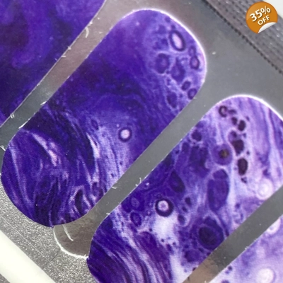 This design reminds us of poured resin art, with purple and white swirls.