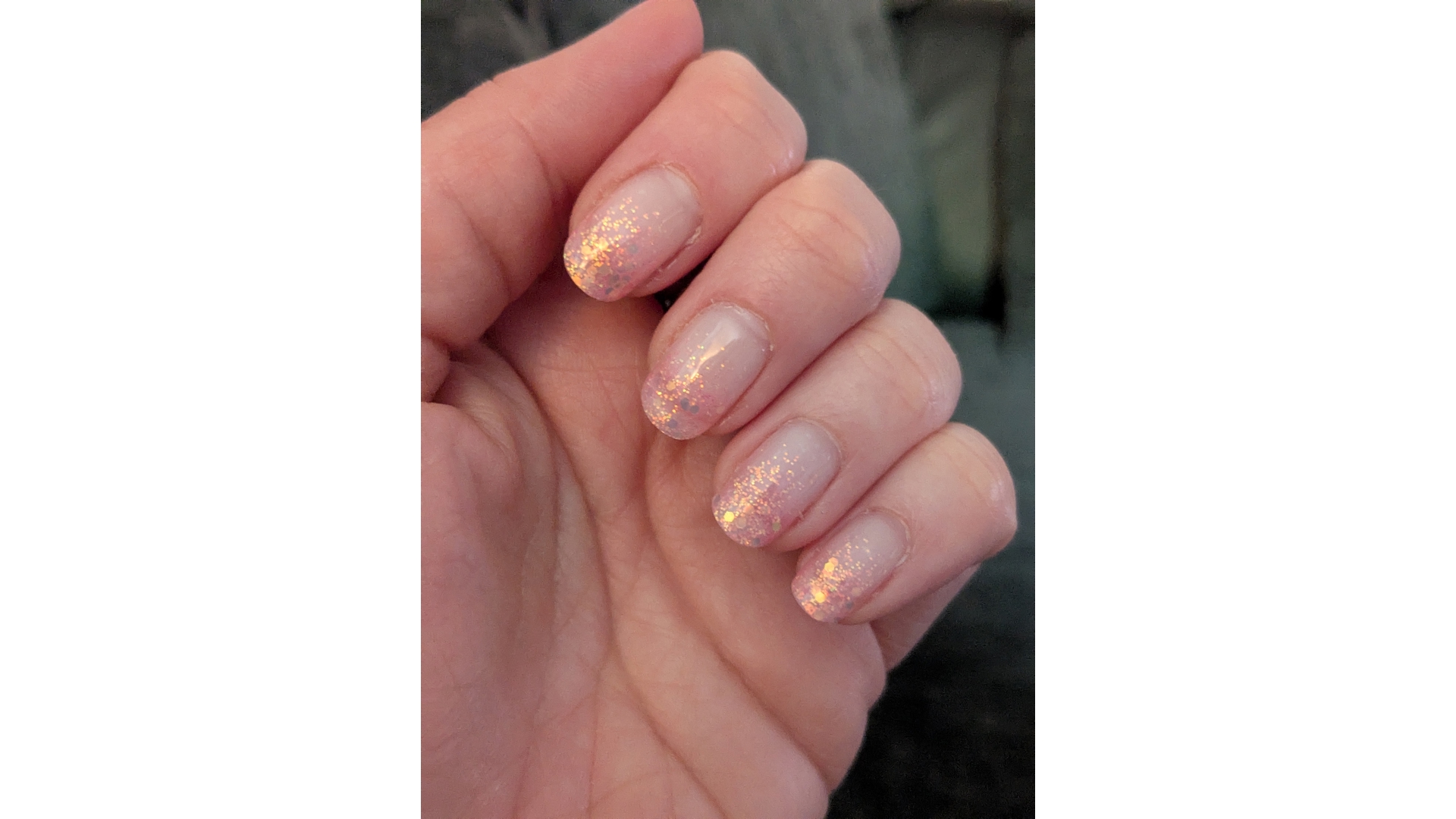 Super pretty pink glitter and chunky iridescent confetti glitter ombre tips on a transparent background. Wear alone or layered over another colour.