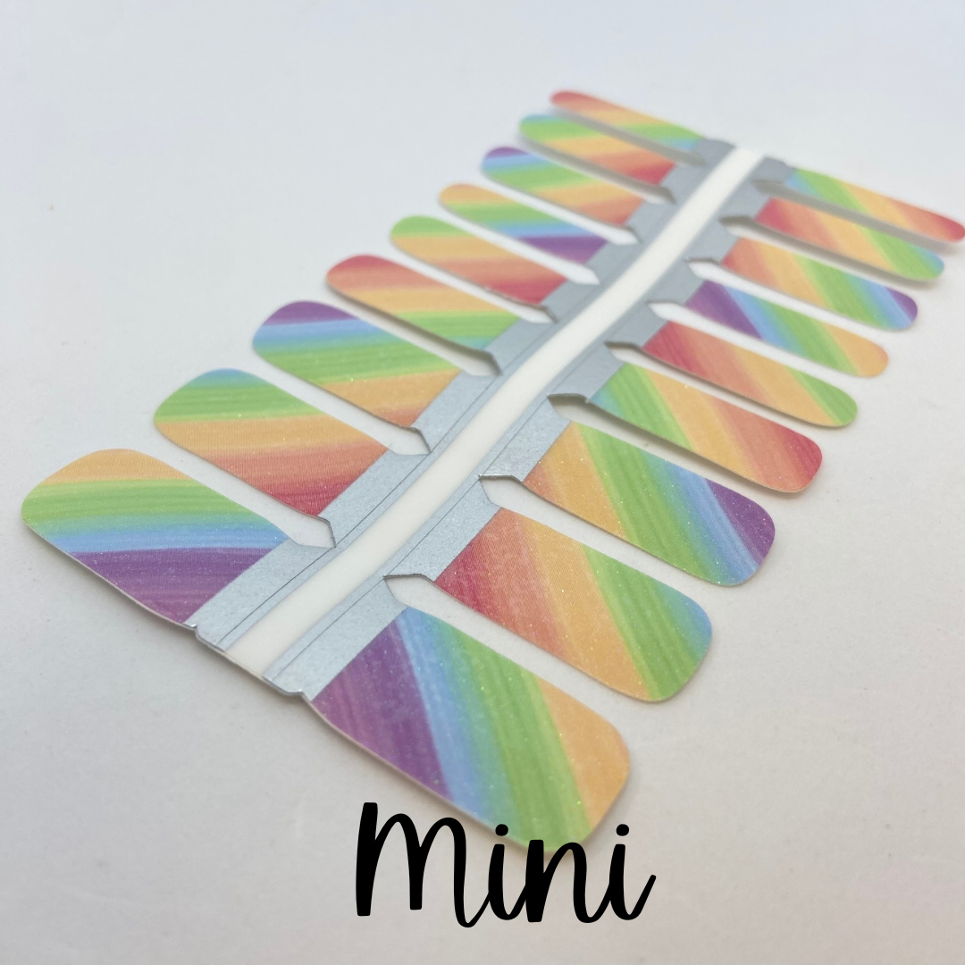 ✨ Bursting with vibrant diagonal rainbow brushstrokes and topped with a sparkling holographic glitter sprinkle, Prism Pop Minis are pure joy for tiny nails! Perfectly sized for little fingertips, this playful design adds a pop of color and a shimmer of magic to every mini mani.