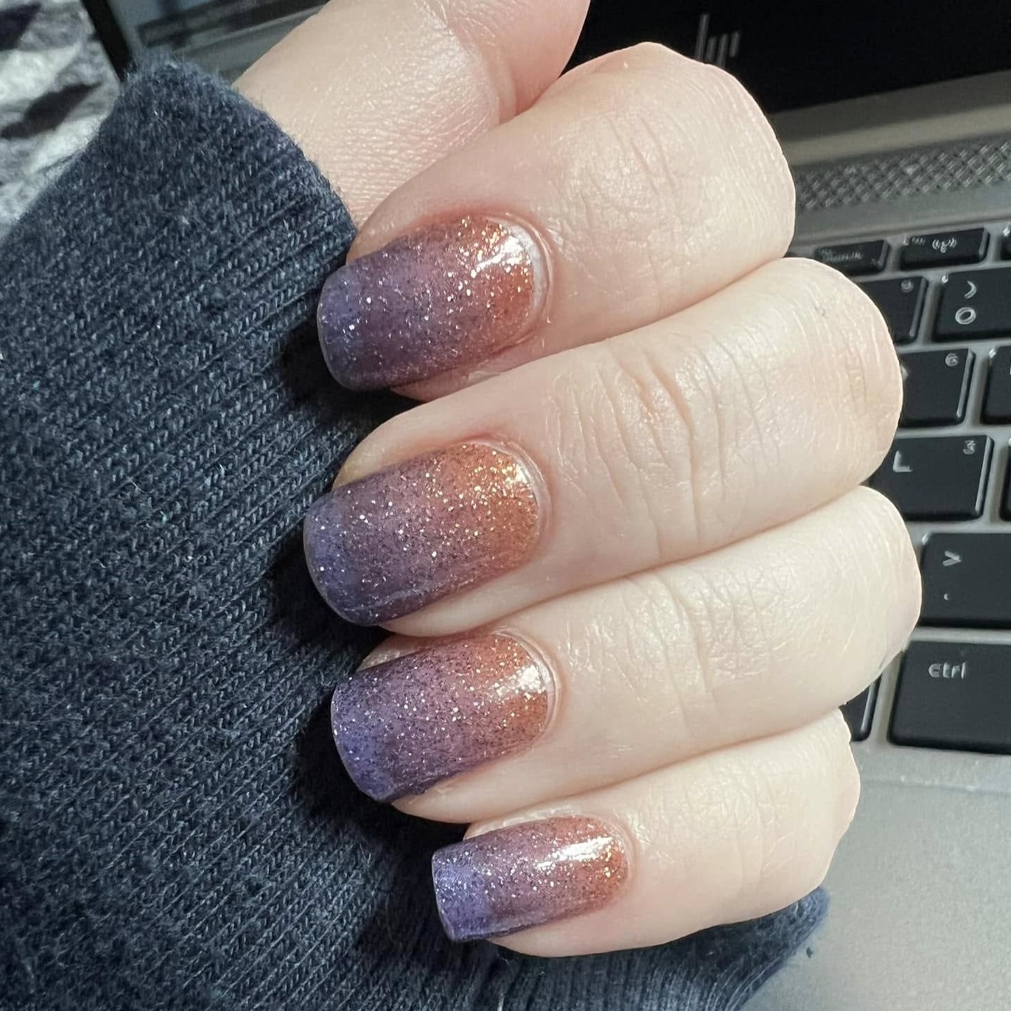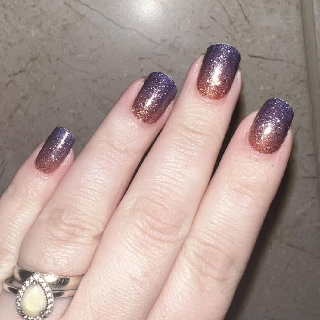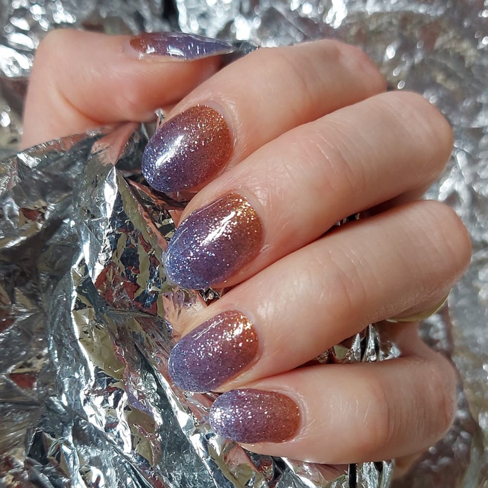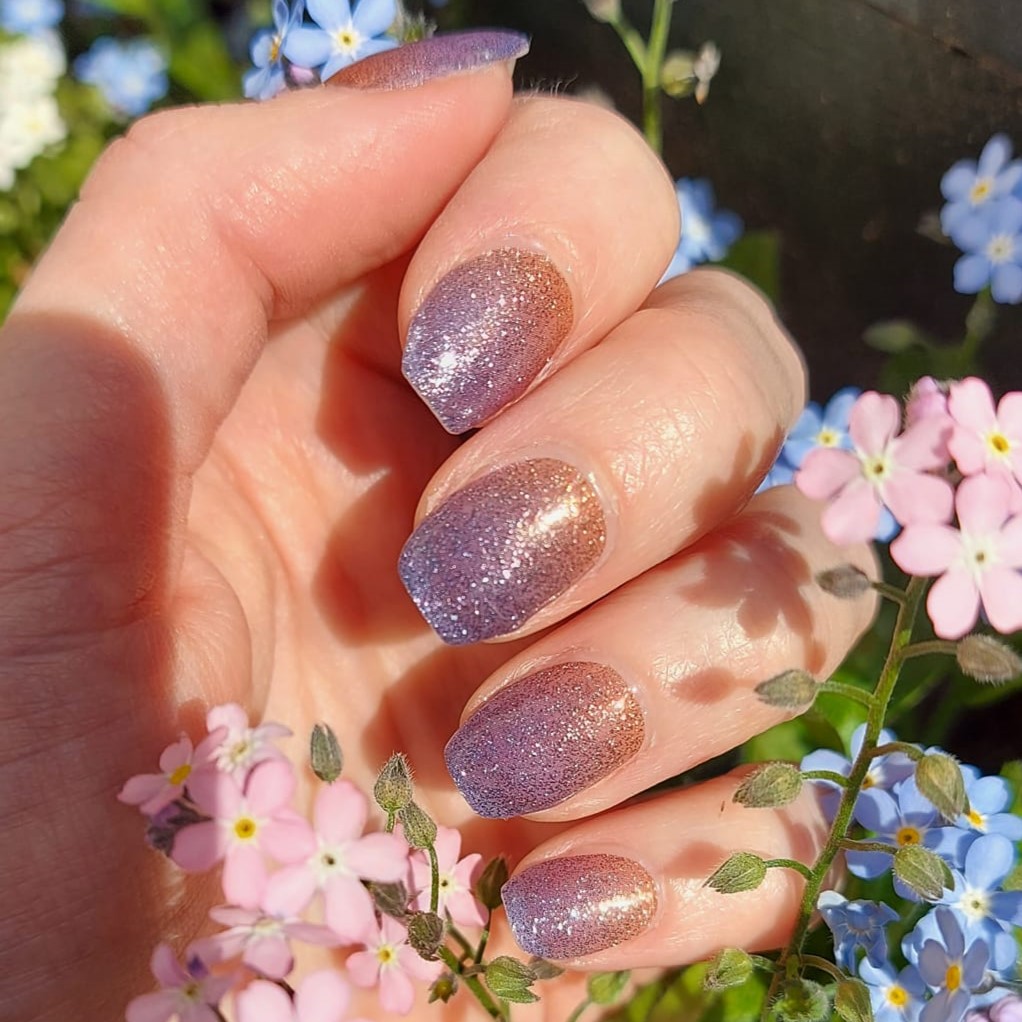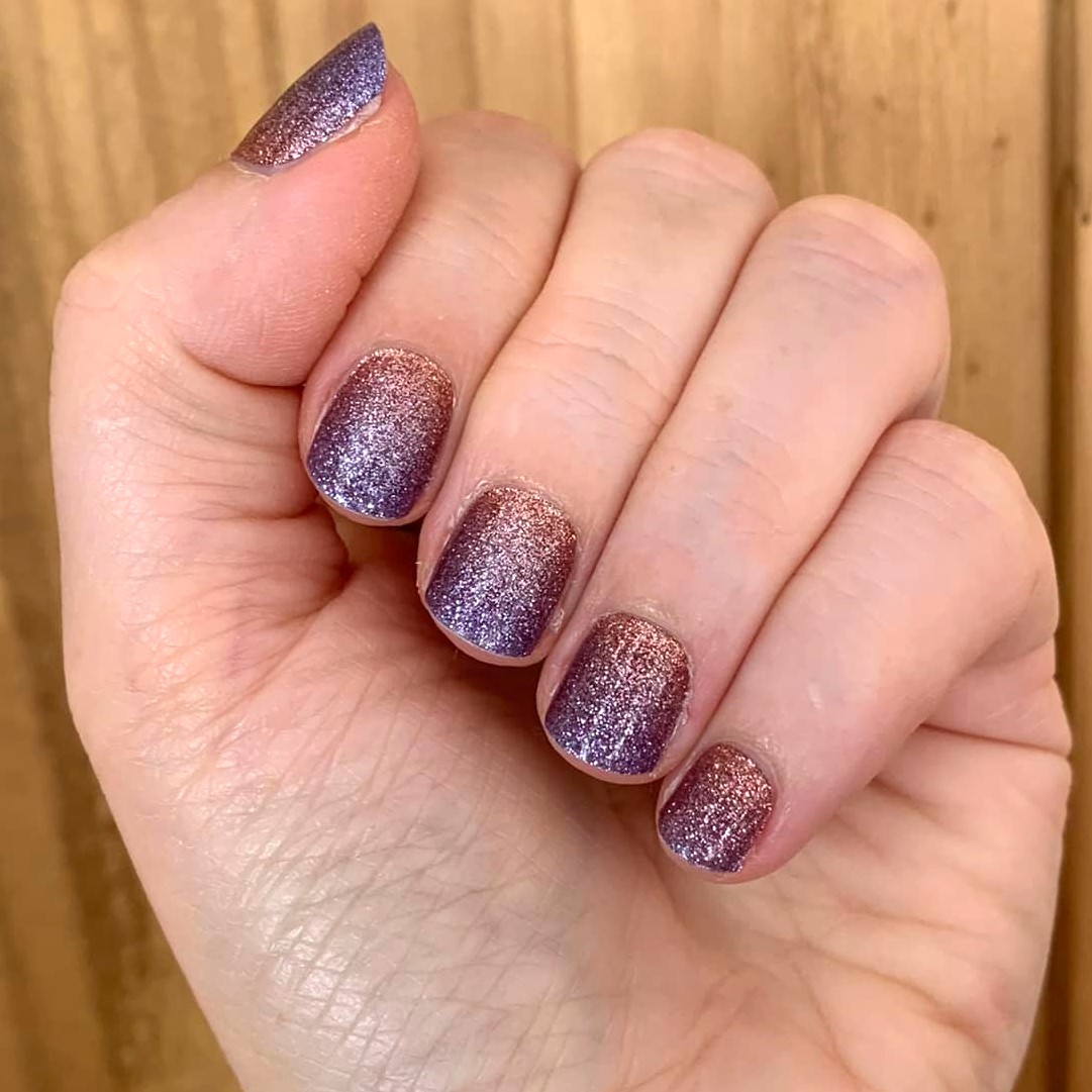 Gorgeous glitter wrap moving from pale peach to lilac. Wider wraps easily trimmed to fit.