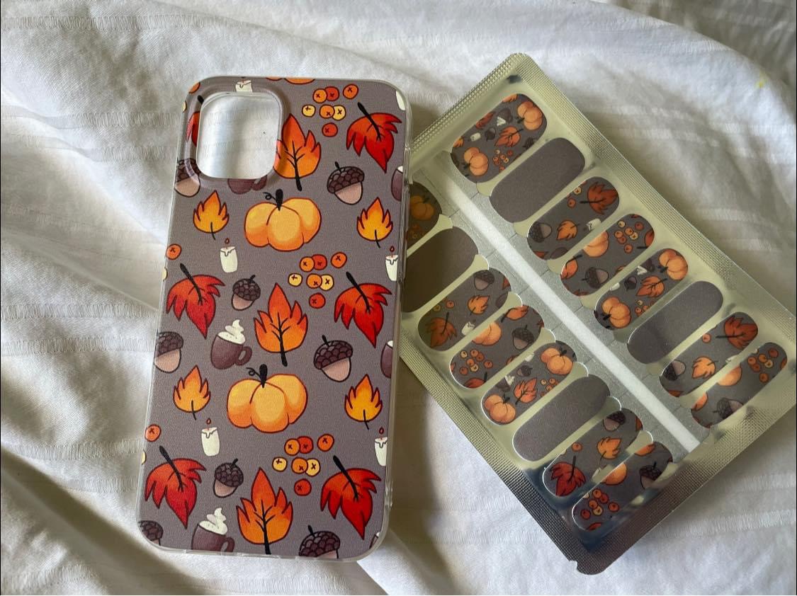 I definitely think this is my all time favourite wrap. I even bought a matching phone case, I love it that much! Matched with Rum and Coke wrap in the first picture. Perfect autumn wraps