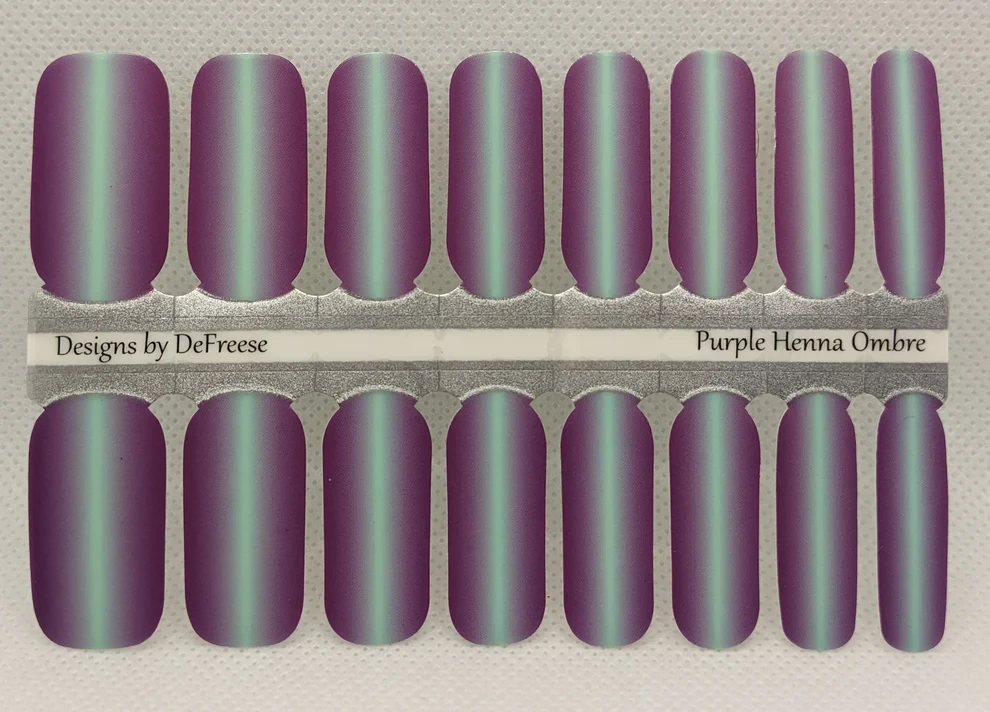 Purple Henna Ombre was designed to co-ordinate with Purple Henna. It is a vertical ombre of purple and aqua in a matte finish. You can create a glossy finish with the addition of a gloss top coat.