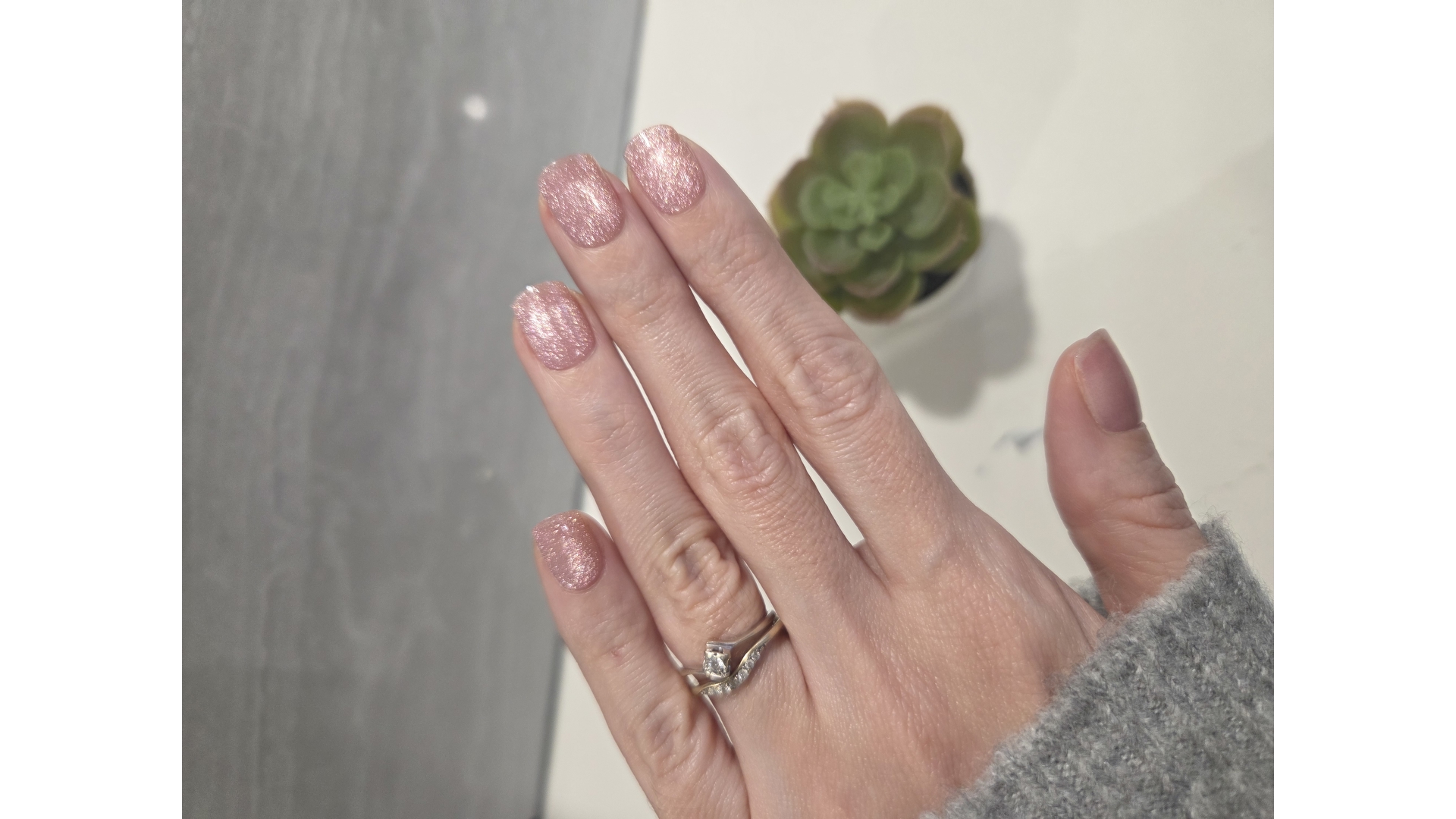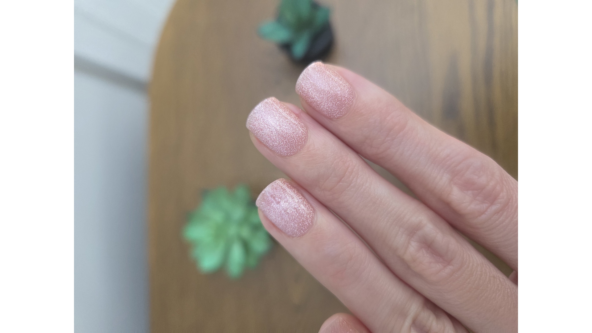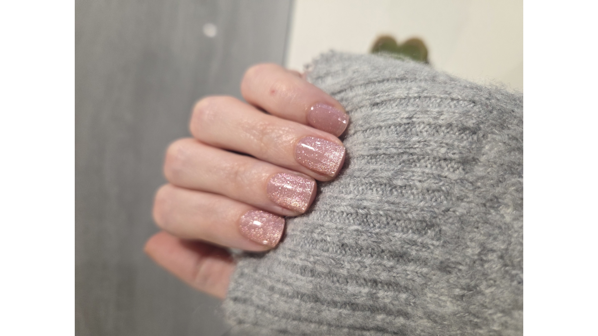 Light, luminous and effortlessly elegant, Sheer Delight is the ultimate understated sparkle. With a pale pink sheer base kissed by magnetic cat’s eye glitter, this design adds just the right amount of shimmer for everyday wear or a subtle touch of glamour. Soft, graceful, and simply delightful.