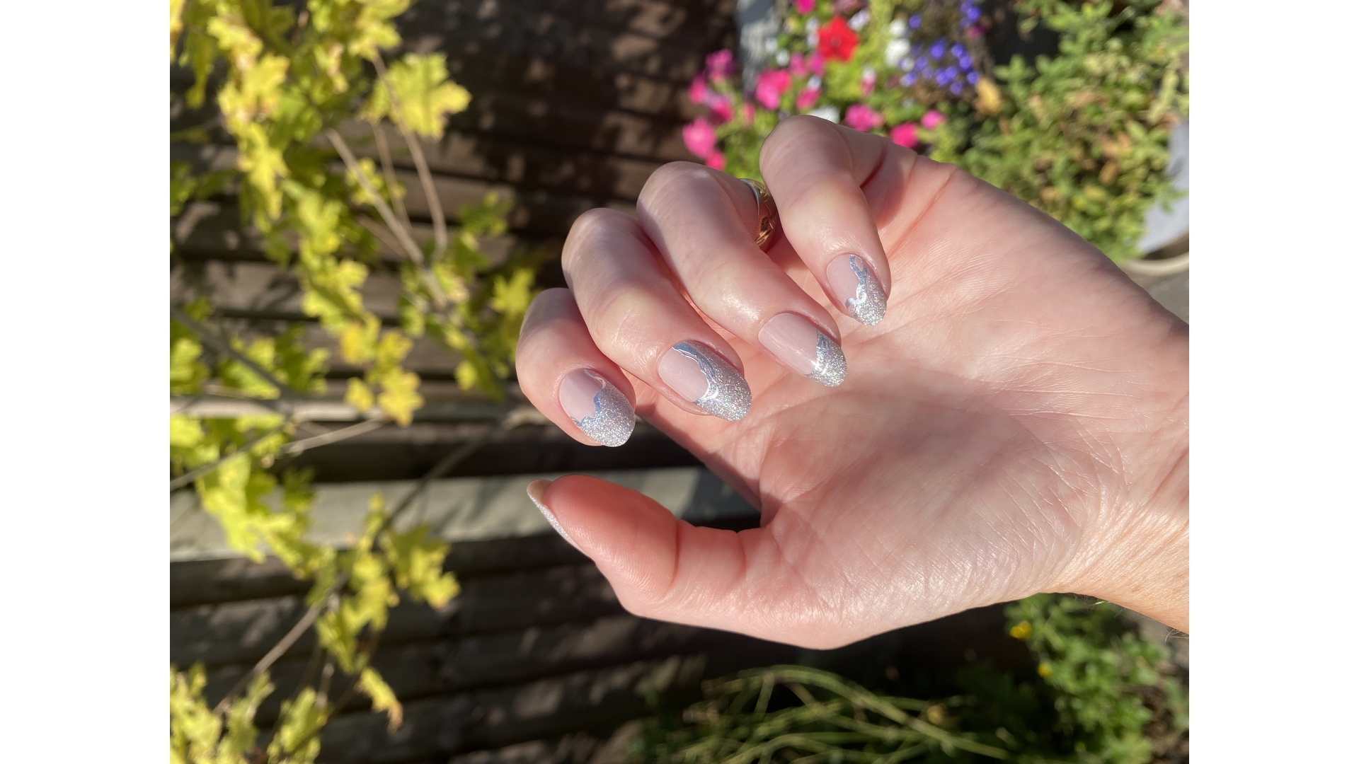 Stunning and elegant, Shine Like a Diva is an alternative French tip featuring a neutral toned sheer base, with holographic foil lines and our special Shine Like a Diamond holographic and iridescent glitter.