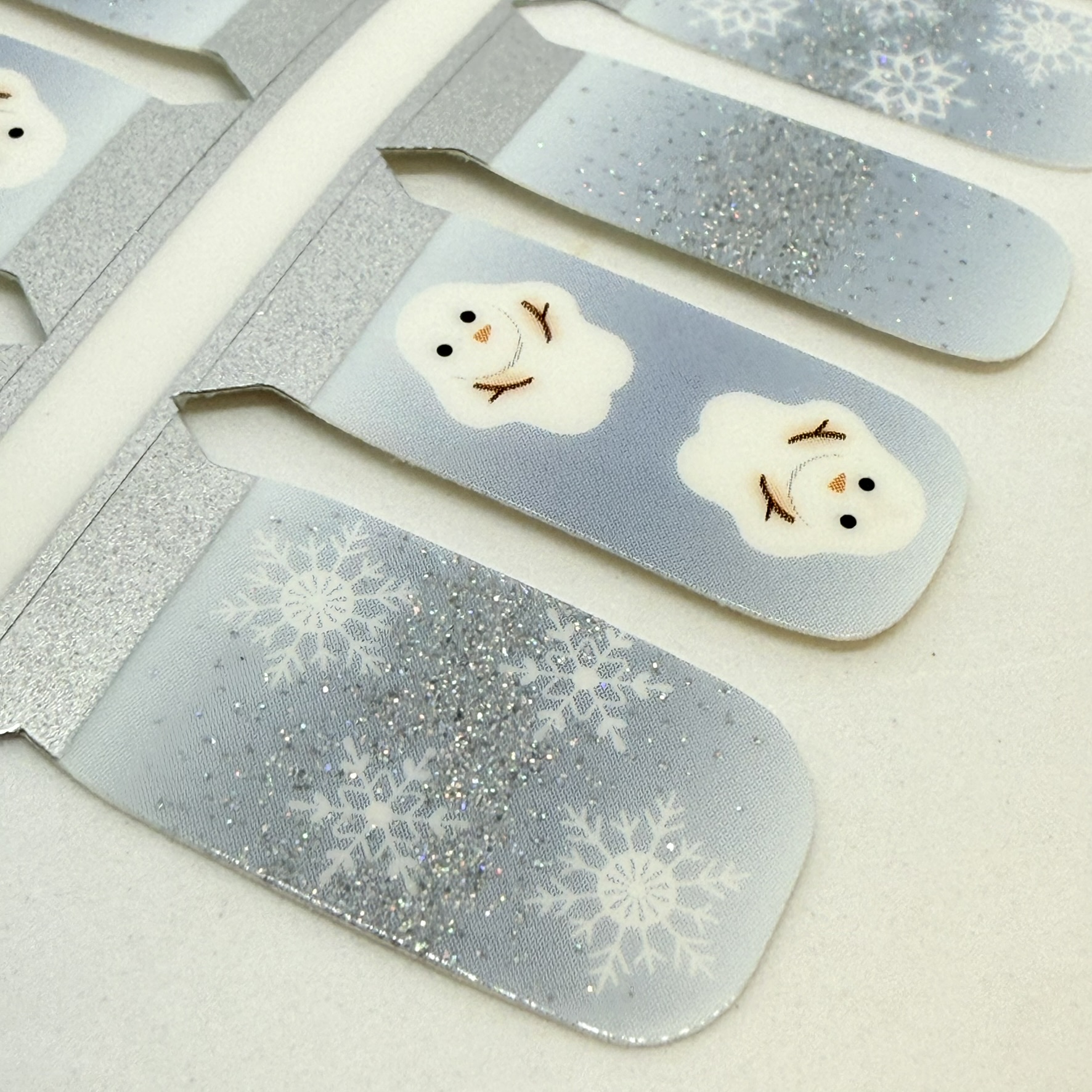 Meet Snolaf Minis the sweetest little winter set for tiny goshers. Soft white to ice blue tips are sprinkled with holo silver sparkle and delicate snowflakes while the accent nails feature our adorable melted snowman Snolaf ready to bring a smile to any cold day. Cute easy and full of frosty fun for every mini.