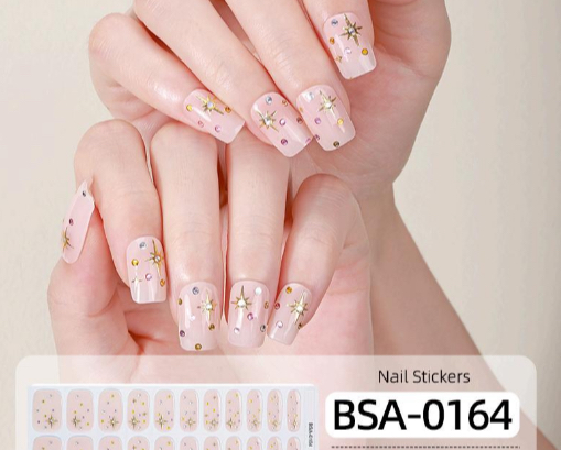 Soft dreamy and full of quiet magic. Star Kissed features a neutral milky base scattered with delicate golden stars and tiny twinkling gems that catch the light beautifully. It is sweet subtle and effortlessly celestial giving your nails a gentle shimmer that feels like a little wish resting at your fingertips. Perfect for anyone who loves pretty details with a soft elegant touch.