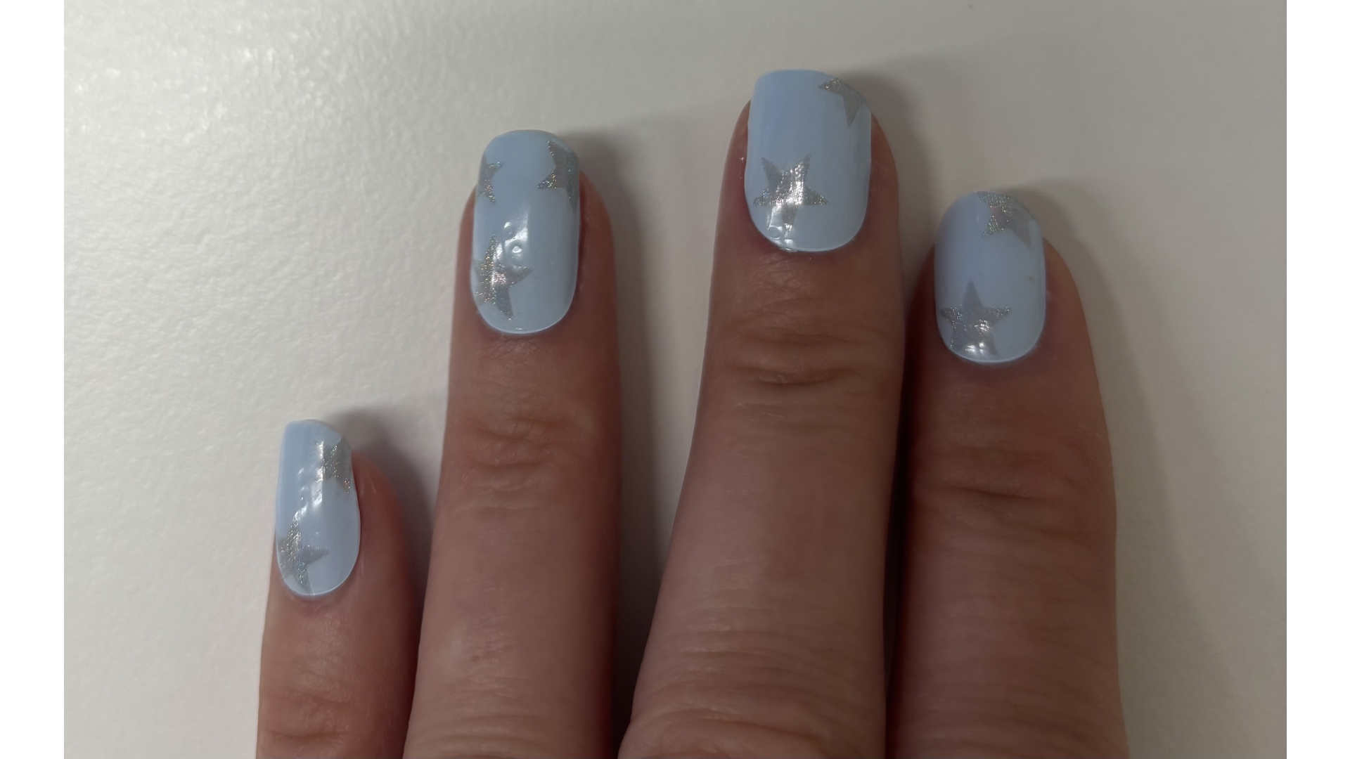 Lovely powder blue nails with subtle silver stars. Slightly shorter than other makes but still plenty long enough. Good sizing and easy to apply