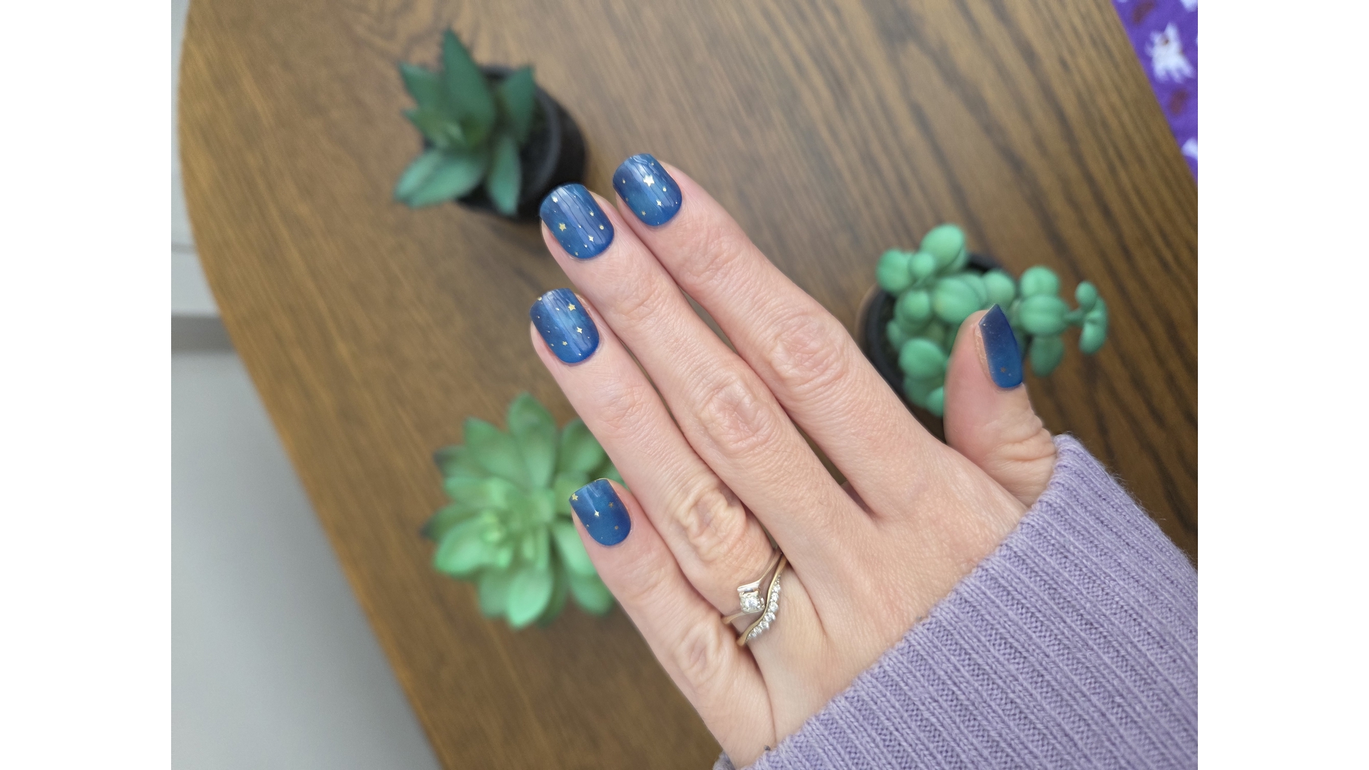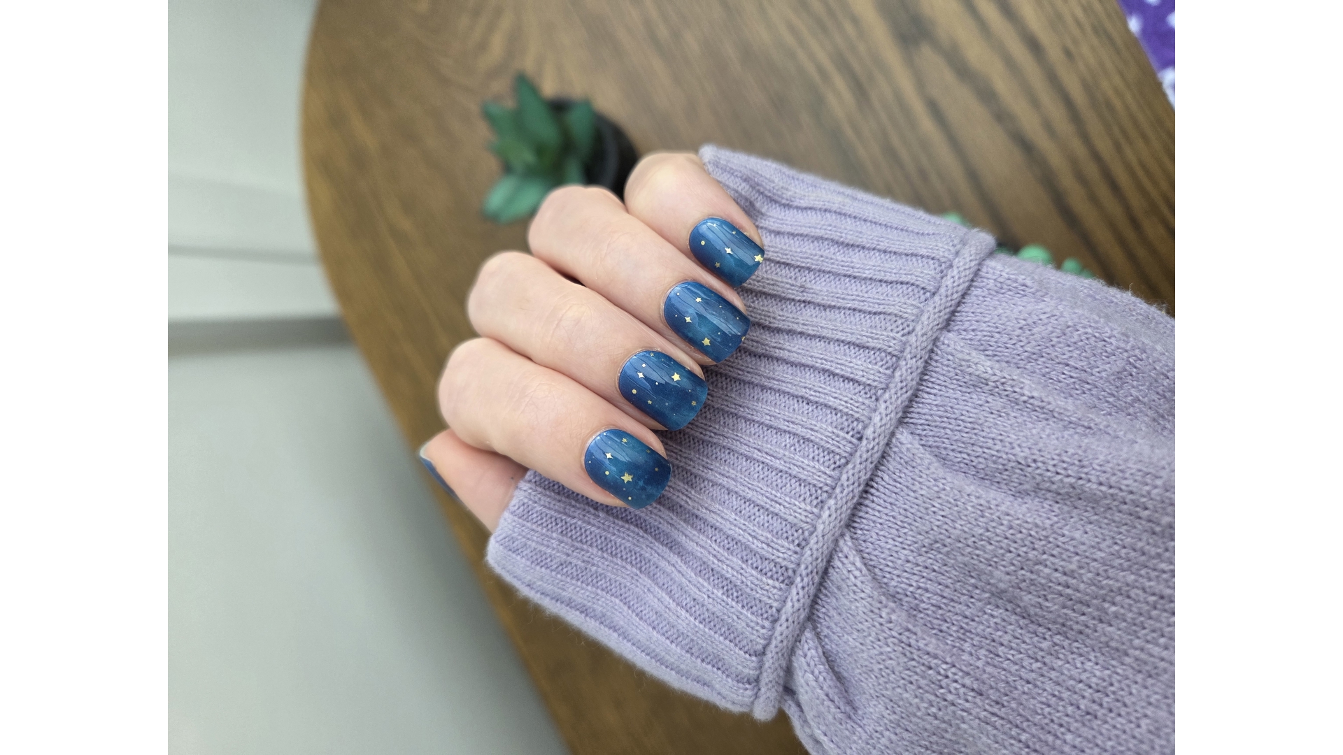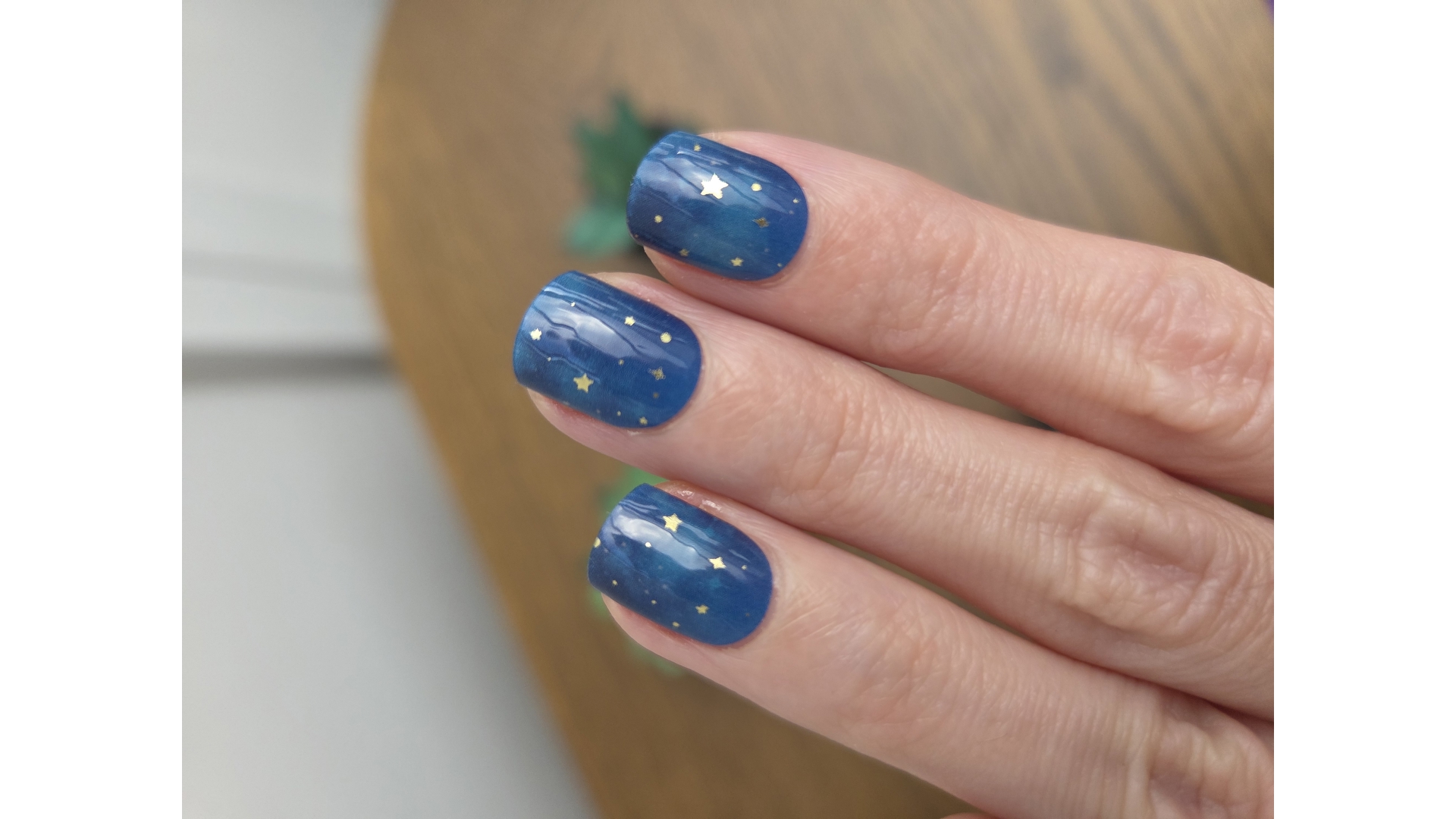 Deep midnight blue nails scattered with tiny golden stars, like a clear night sky just as the stars begin to appear. Starfall is calm, celestial and quietly striking, designed for those who love something a little magical but still beautifully wearable.