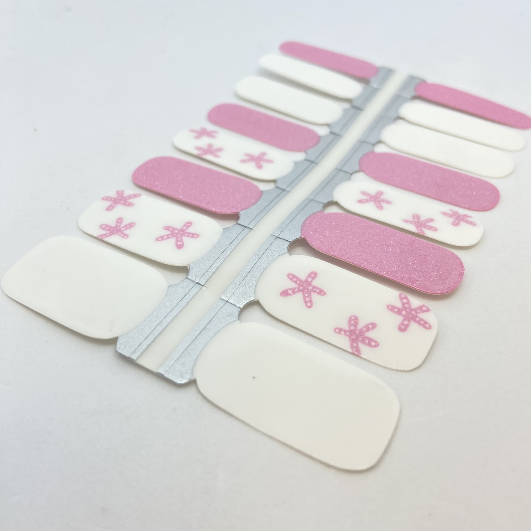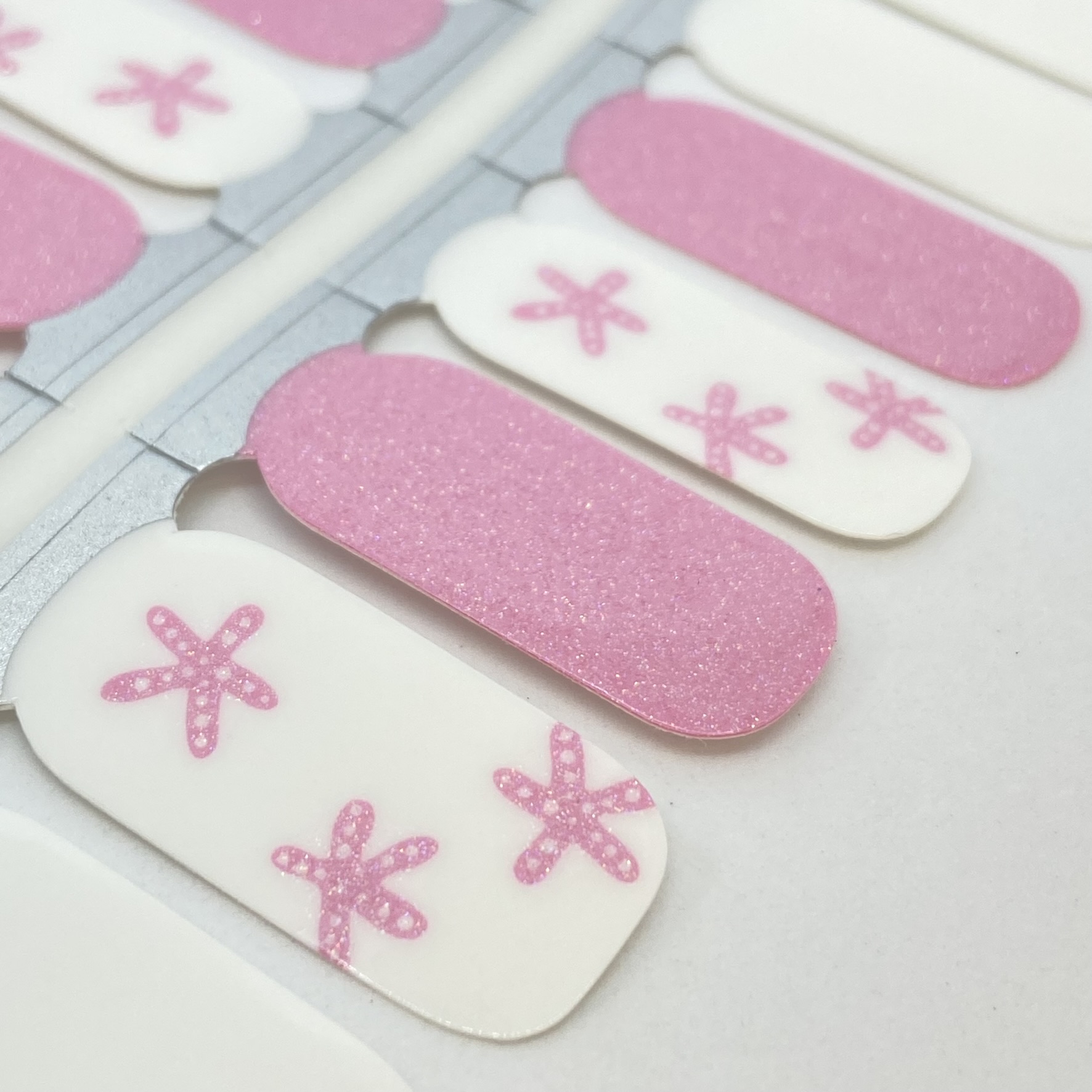 ✨ Starfish Kisses brings beachy bliss with soft pink starfish dancing on a dreamy milky-white base—paired with sparkling pink glitter solids for a splash of seaside sparkle!