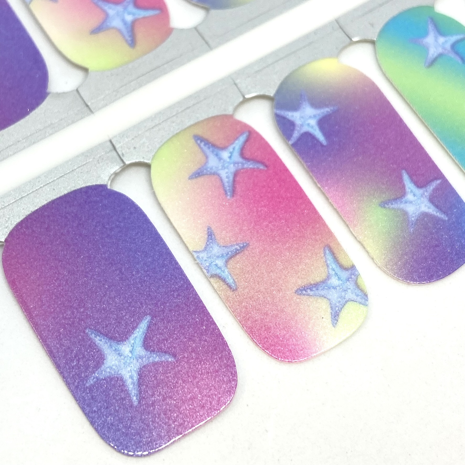 Starfish Wishes features a pastel rainbow of colours with shimmery silver starfish.