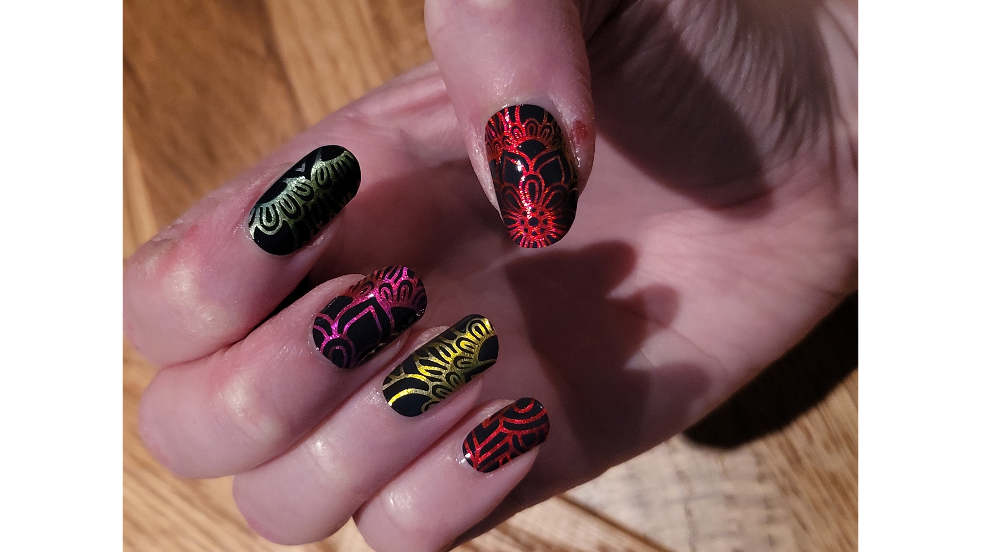 This wrap will give you statement nails. A simple design that captures attention. I don't have particularly long nails yet this wrap looks superb. Delivery time, even to the USA, was quick and everything arrived in perfect condition.