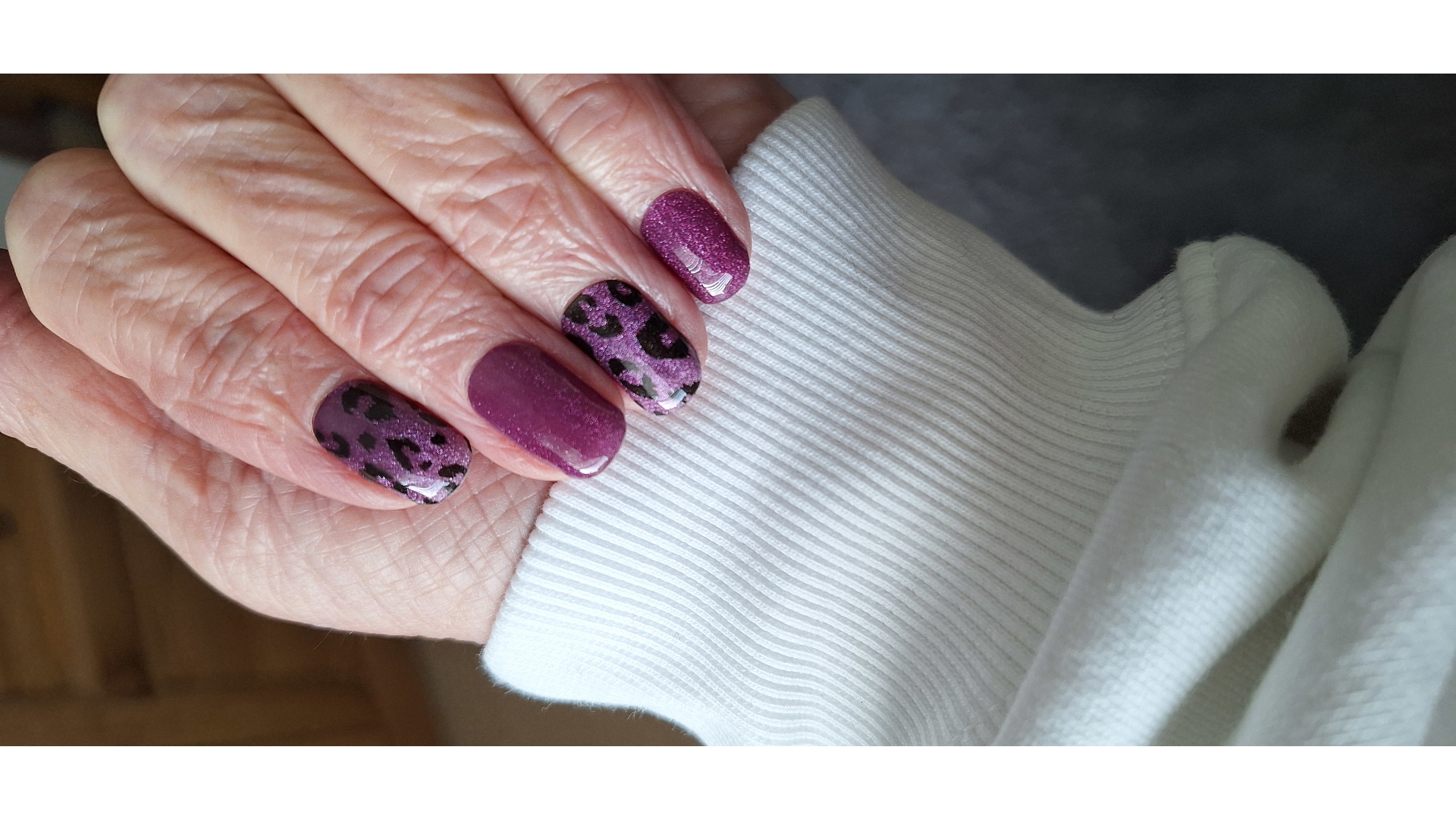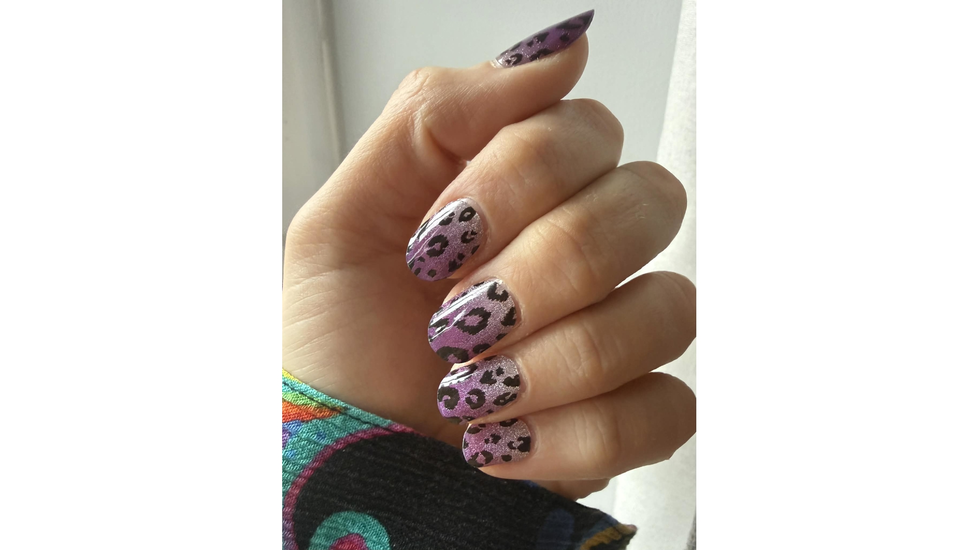Untamed features a rich violet base with a vertical magnetic cats eye shimmer that creates a striking beam of light through each nail. The luminous effect shifts as you move, adding depth and dimension with every flick of your hand. Finished with bold black leopard print, this design blends fierce glamour with high impact shine.