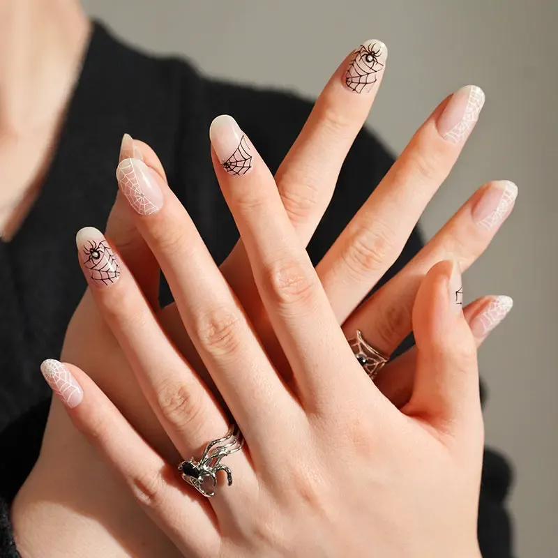 Apply to the nail at the cuticle end and smooth onto the nail, ensuring that it does not sit on the skin or cuticle. Slightly stretch to remove any bubbles or wrinkles. Use a orange stick or hoof stick to press down the edges.