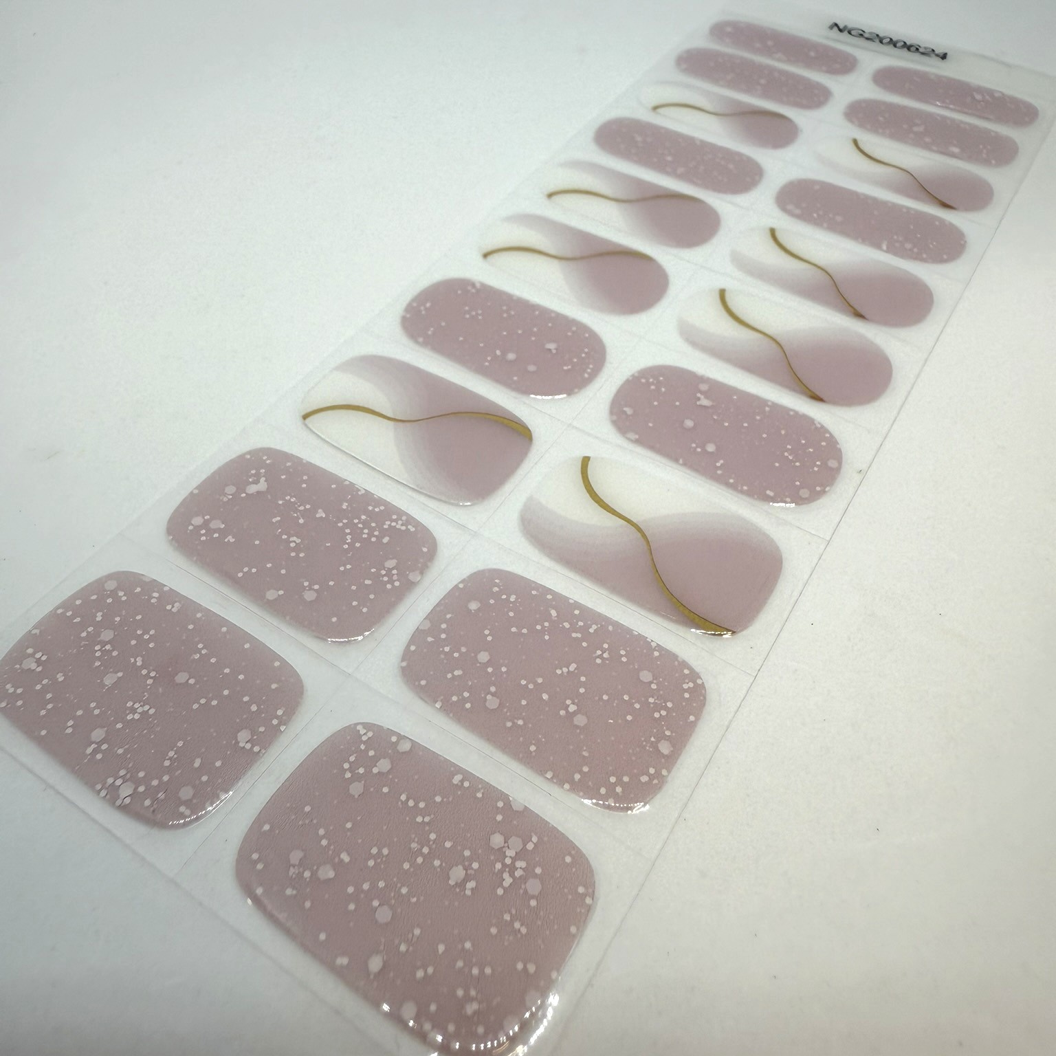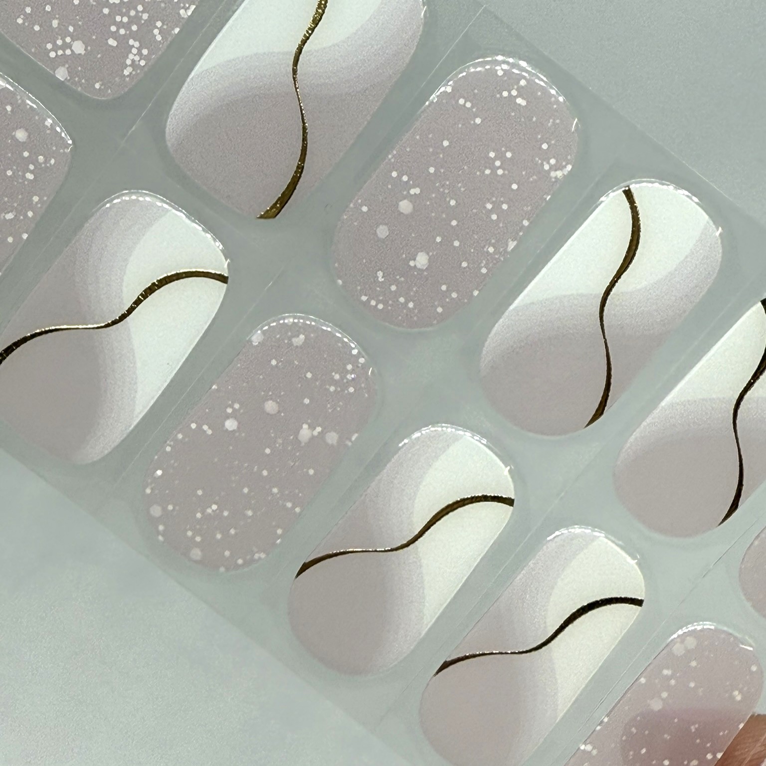 Soft, ethereal, and effortlessly chic, Whispering Veil is a sheer gel design that layers cool white and pale blush-pink with a dusting of airy speckles. Flowing accents of metallic gold foil trace across the nails like gentle whispers of light, adding a refined touch of elegance. Perfect for those who love a subtle yet luxurious look, this set is versatile enough for everyday wear yet dreamy enough for special occasions.